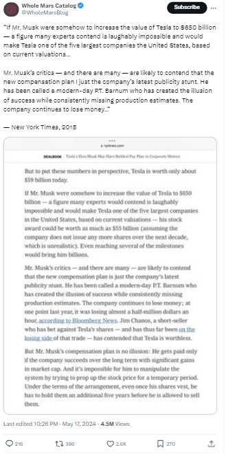 This communication contains forward-looking statements within the meaning of the Private Securities Litigation Reform Act of 1995 reflecting Tesla’s current expectations that involve risks and uncertainties. These forward-looking statements include, but are not limited to, statements concerning its goals, commitments, strategies and mission, its plans and expectations regarding the proposed redomestication of Tesla from Delaware to Texas (the “Texas Redomestication”) and the ratification of Tesla’s 2018 CEO pay package (the “Ratification”), expectations regarding the future of litigation in Texas, including the expectations and timing related to the Texas business court, expectations regarding the continued CEO innovation and incentivization under the Ratification, potential benefits, implications, risks or costs or tax effects, costs savings or other related implications associated with the Texas Redomestication or the Ratification, expectations about stockholder intentions, views and reactions, the avoidance of uncertainty regarding CEO compensation through the Ratification, the ability to avoid future judicial or other criticism through the Ratification, its future financial position, expected cost or charge reductions, its executive compensation program, expectations regarding demand and acceptance for its technologies, growth opportunities and trends in the markets in which we operate, prospects and plans and objectives of management. The words “anticipates,” “believes,” “continues,” “could,” “design,” “drive,” “estimates,” “expects,” “future,” “goals,” “intends,” “likely,” “may,” “plans,” “potential,” “seek,” “sets,” “shall,” “spearheads,” “spurring,” “should,” “will,” “would,” and similar expressions are intended to identify forward-looking statements, although not all forward-looking statements contain these identifying words. Tesla may not actually achieve the plans, intentions or expectations disclosed in its forward-looking statements and you should not place undue reliance on Tesla’s forward-looking statements. Actual results or events could differ materially from the plans, intentions and expectations disclosed in the forward-looking statements that we make. These forward-looking statements involve risks and uncertainties that could cause Tesla’s actual results to differ materially from those in the forward-looking statements, including, without limitation, risks related to the Texas Redomestication and the Ratification and the risks set forth in Part I, Item 1A, “Risk Factors” of the Annual Report on Form 10-K for the fiscal year ended December 31, 2023 and that are otherwise described or updated from time to time in Tesla’s other filings with the SEC. The discussion of such risks is not an indication that any such risks have occurred at the time of this filing. Tesla disclaims any obligation to update any forward-looking statement contained in this document.