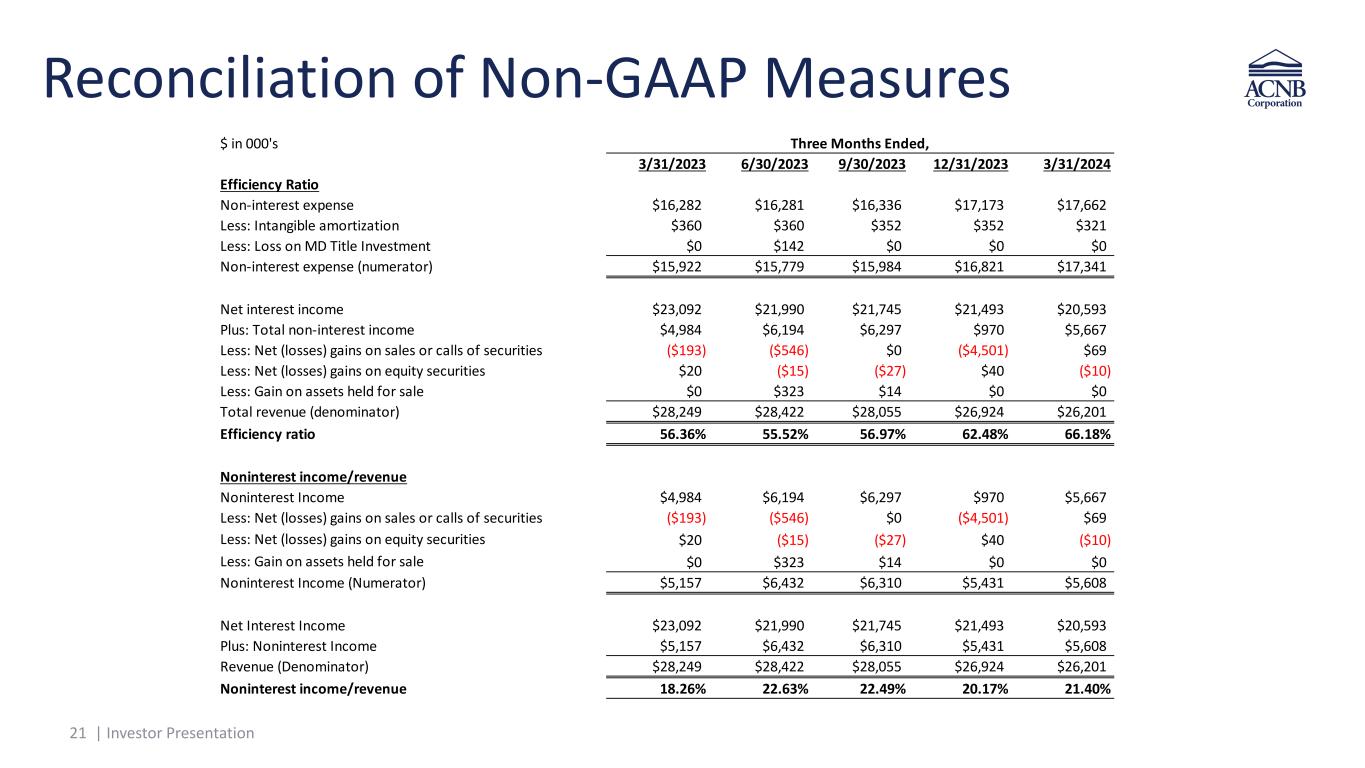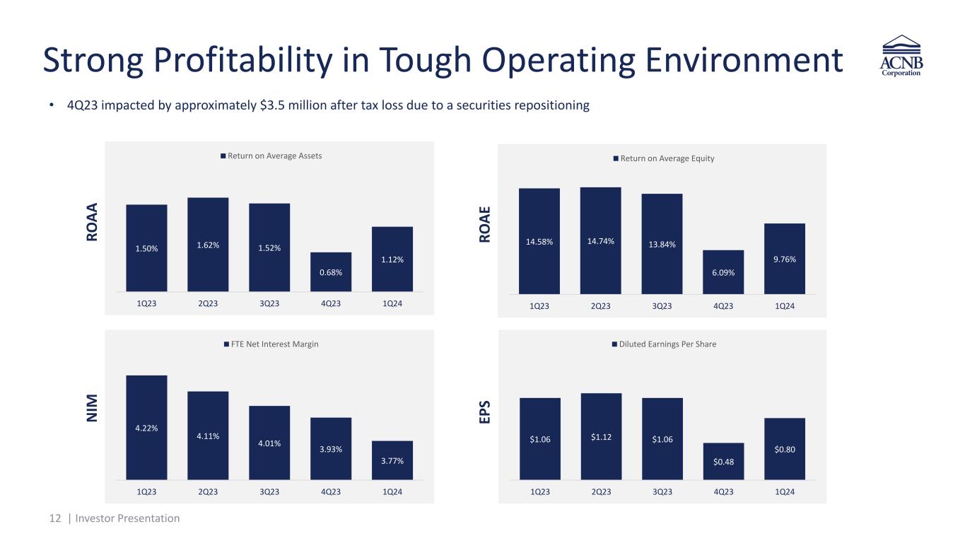 A C N B C O R P O R A T I O N Investor Presentation First Quarter of 2024 Nasdaq: ACNB investor.acnb.com
