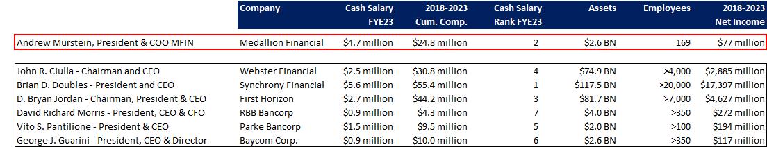 MEDALLION FINANCIAL PAYS ITS EXECUTIVES LARGE AMOUNTS OF MONEY