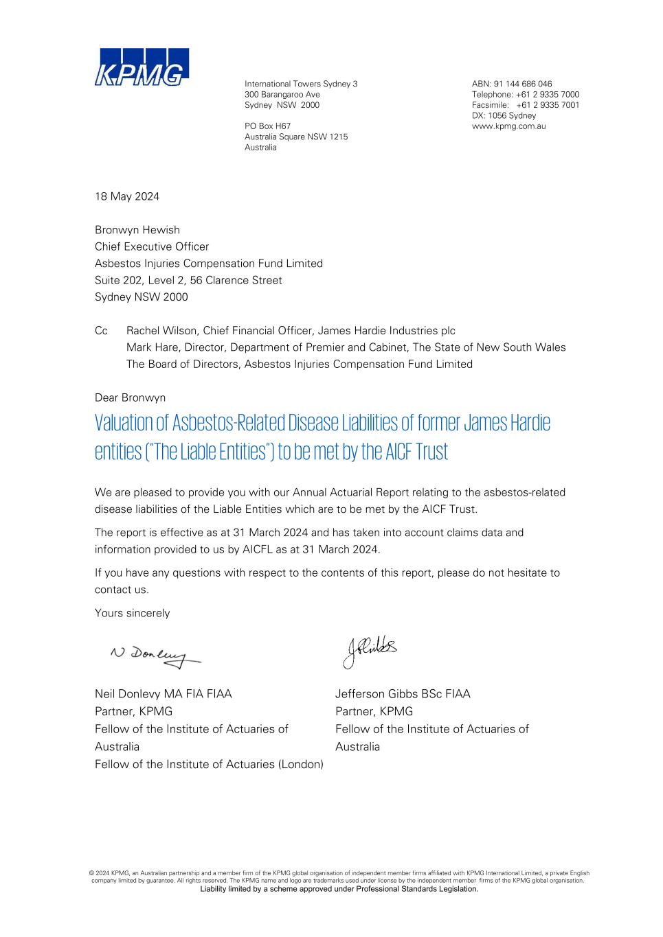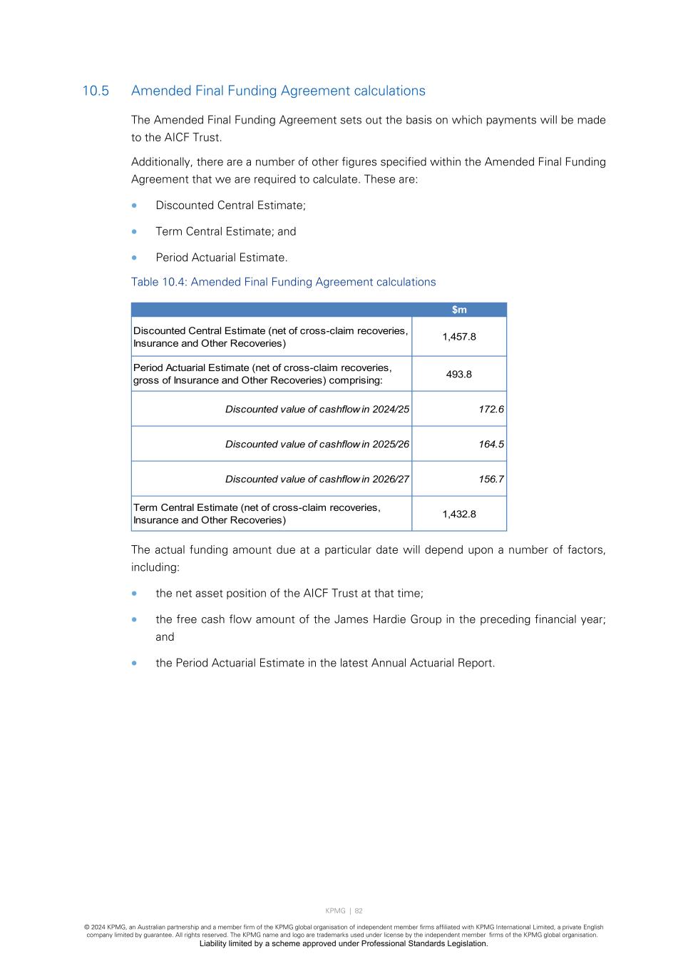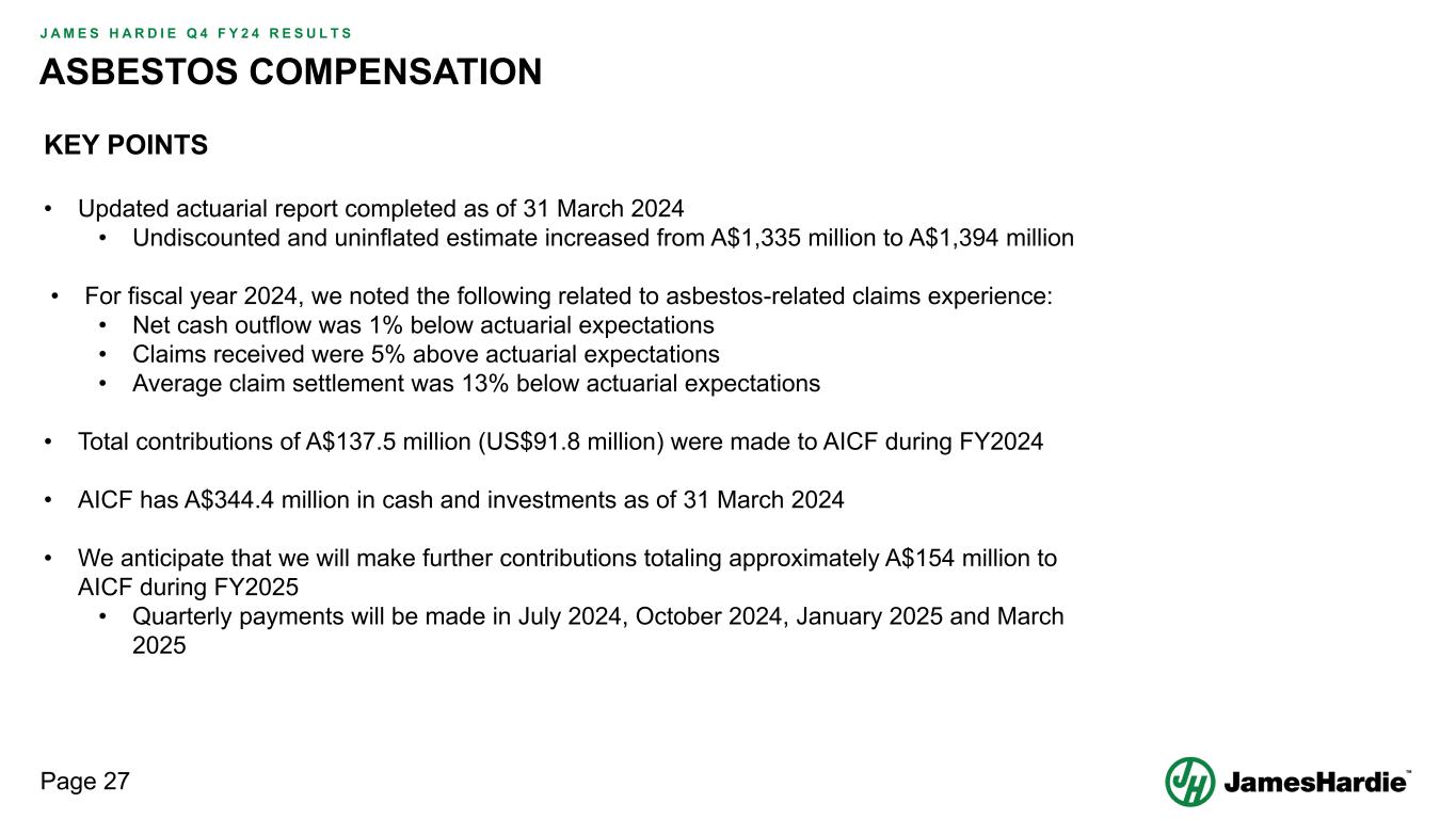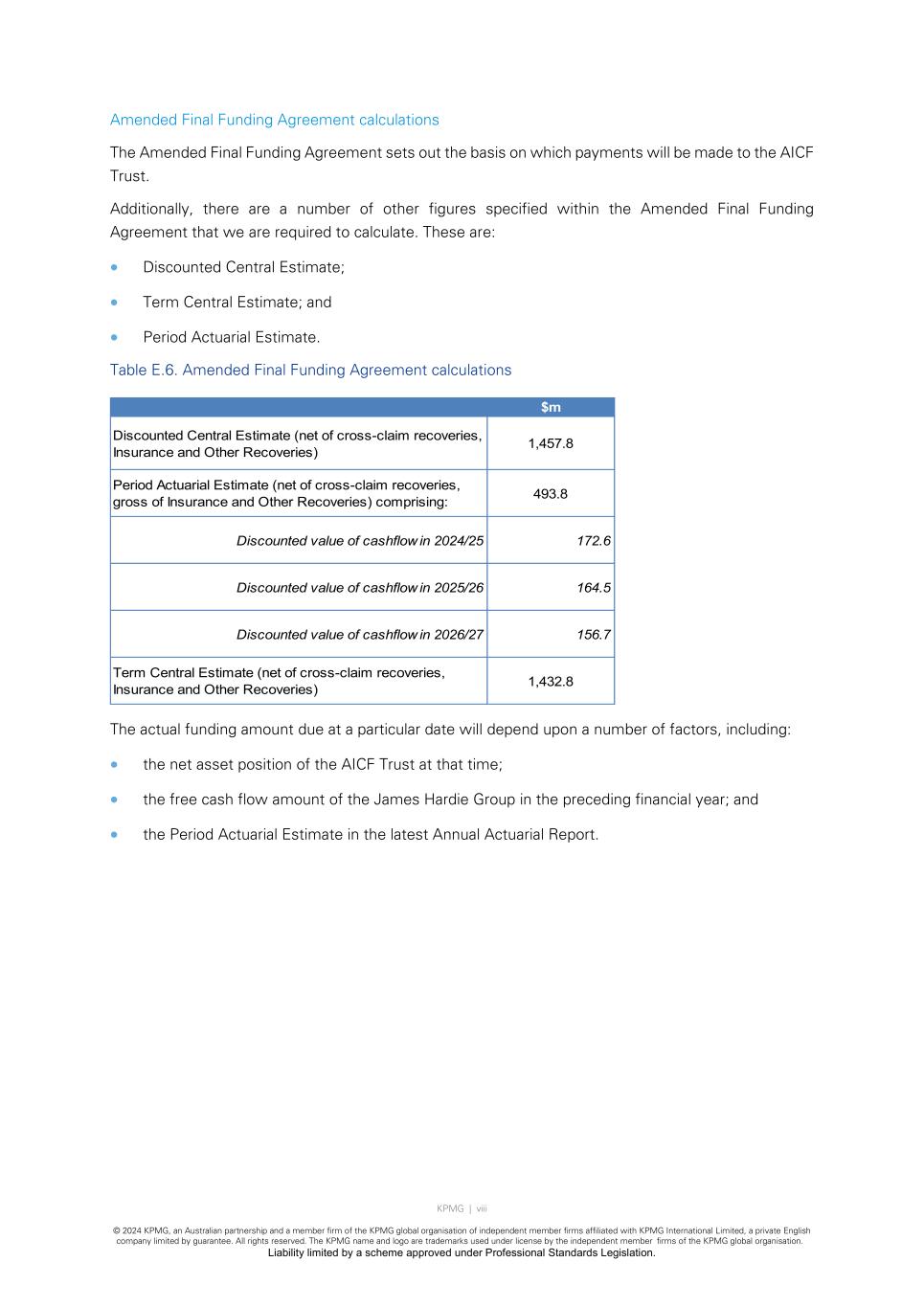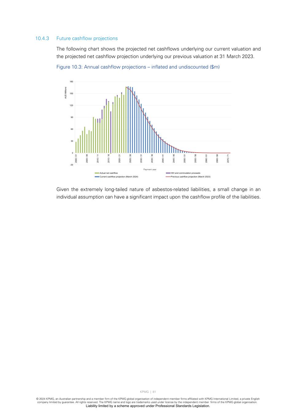 •expectations about the timing and amount of contributions to AICF, a special purpose fund for the compensation of proven Australian asbestos-related personal injury and death claims;