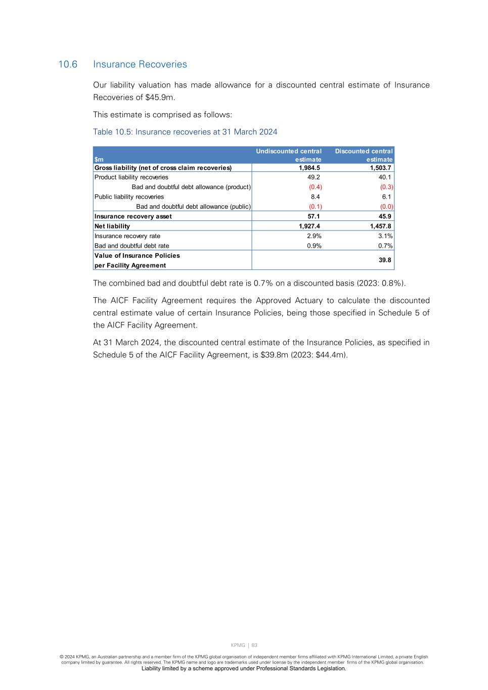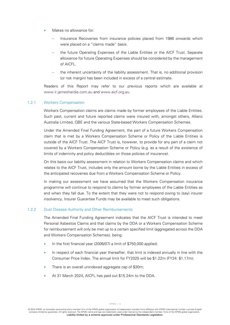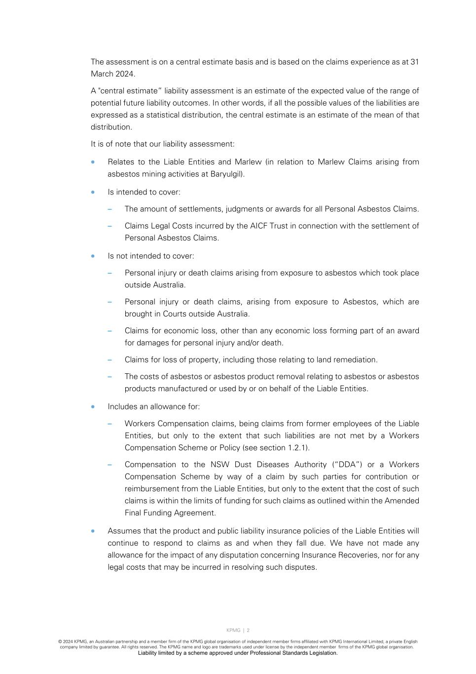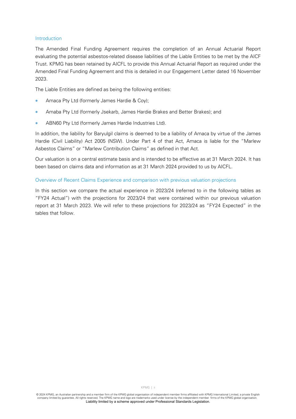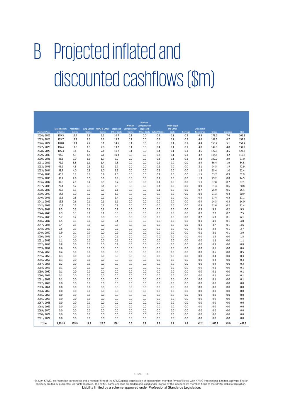 •expectations about the timing and amount of contributions to AICF, a special purpose fund for the compensation of proven Australian asbestos-related personal injury and death claims;