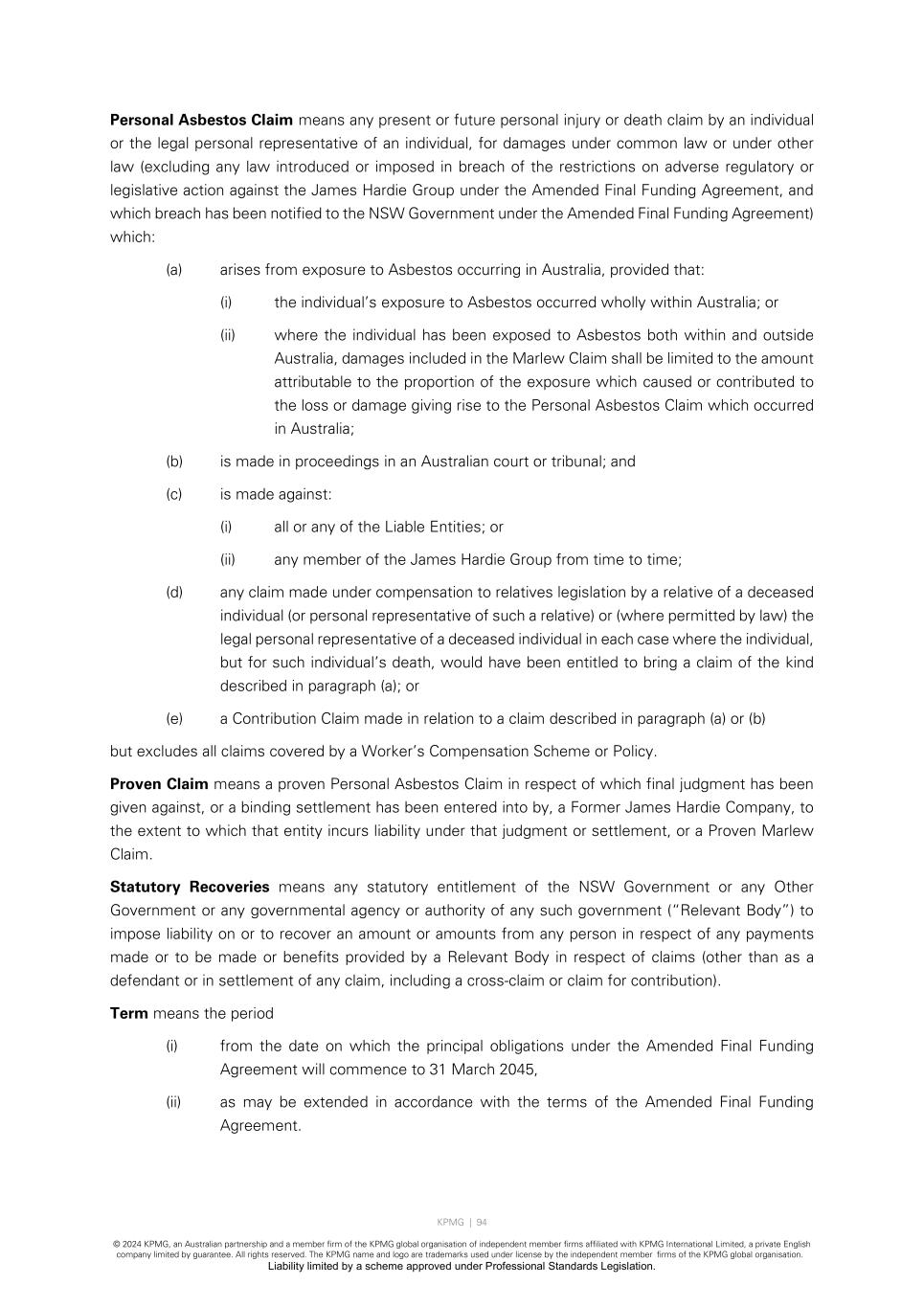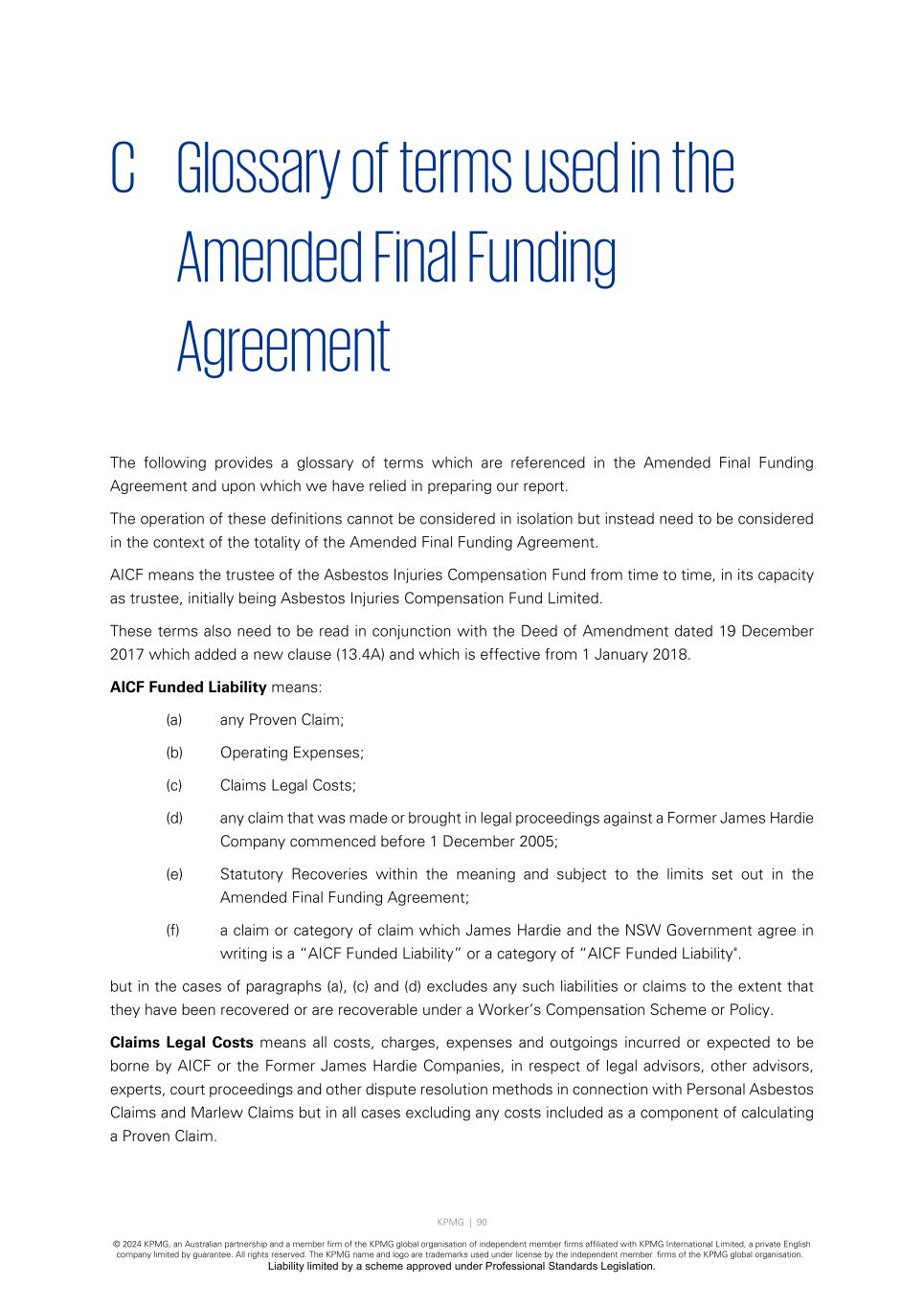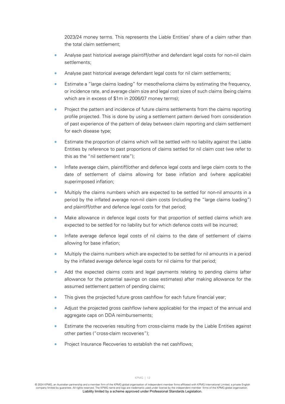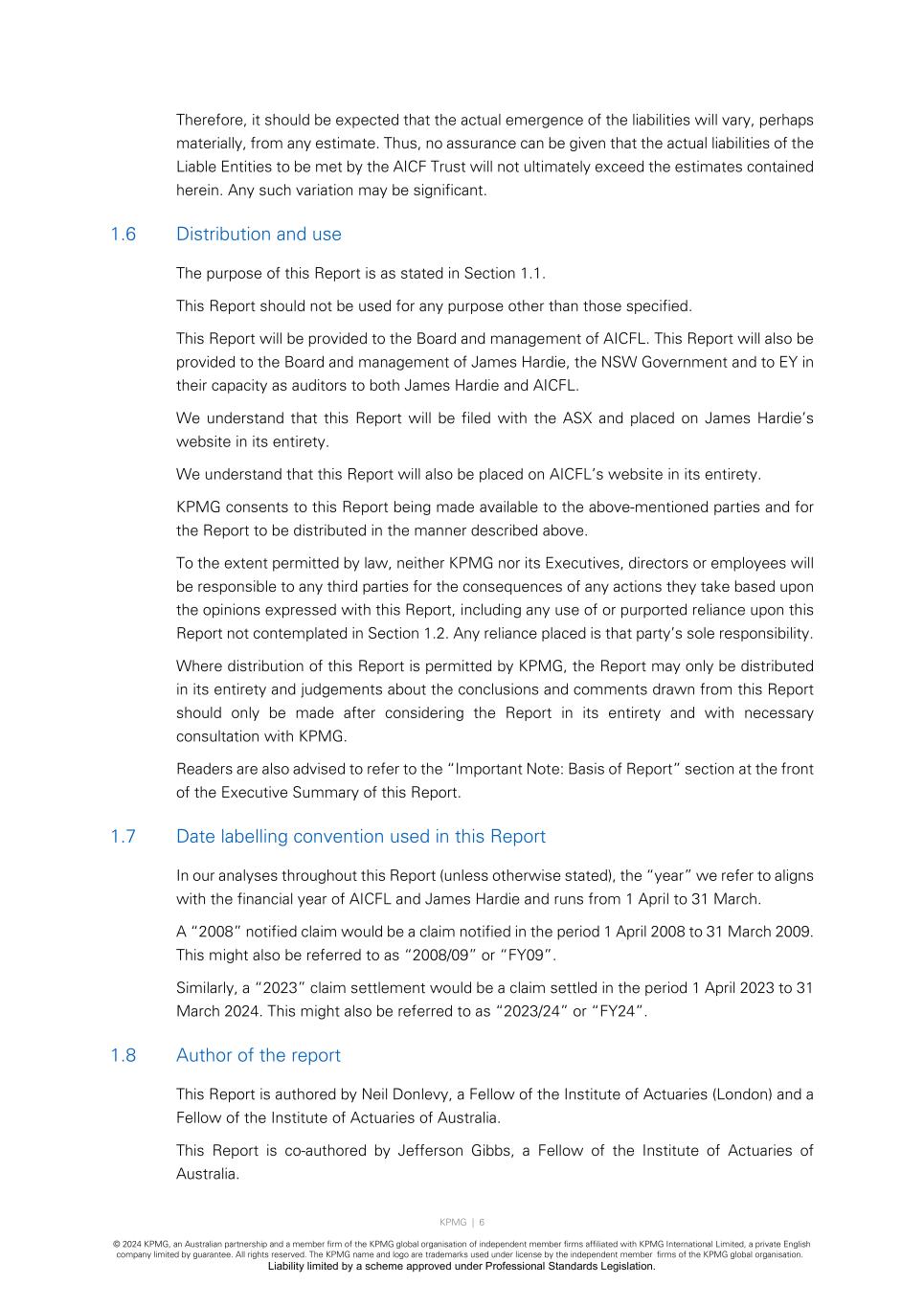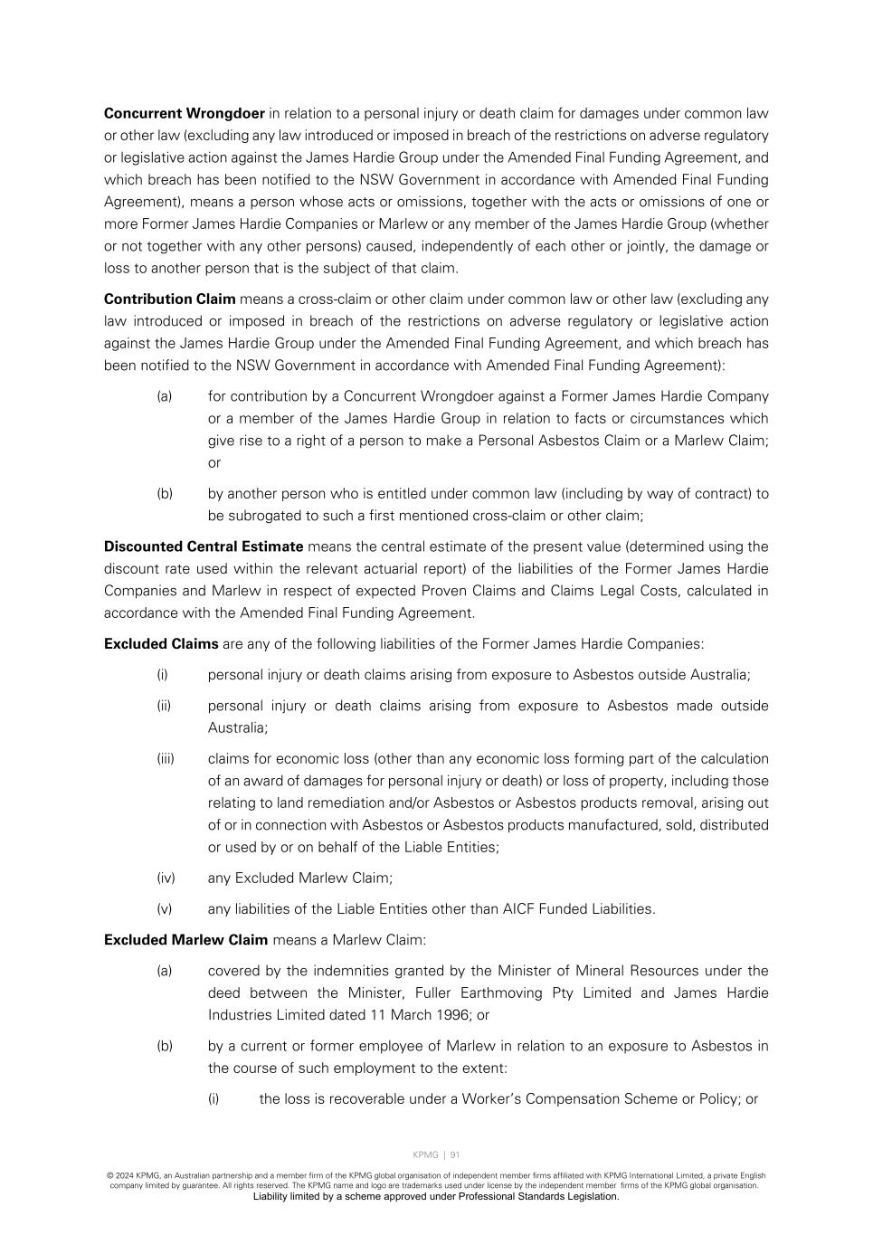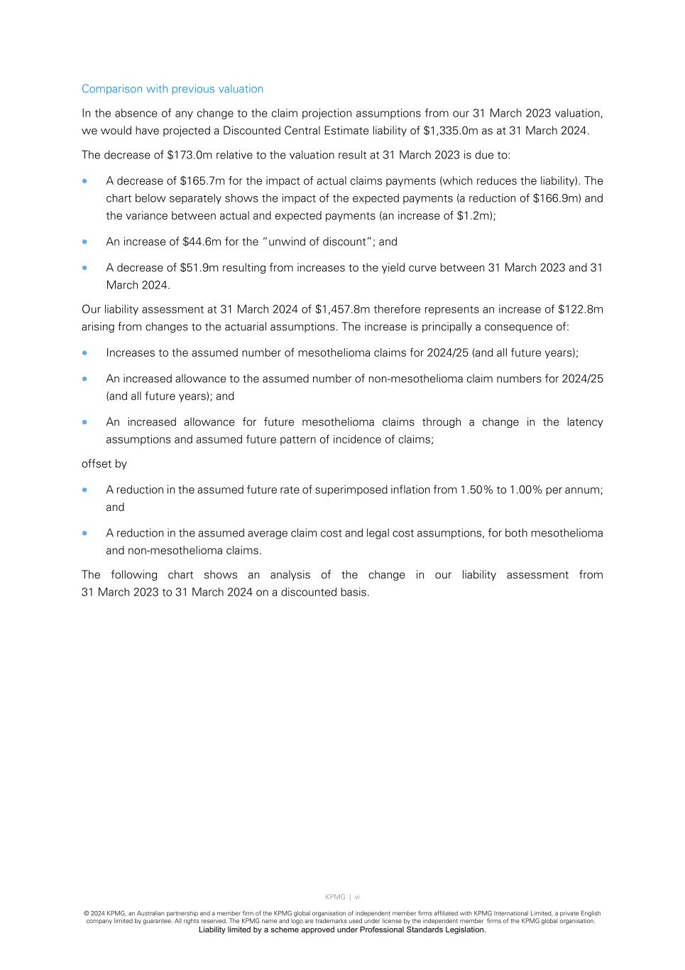 •expectations about the timing and amount of contributions to AICF, a special purpose fund for the compensation of proven Australian asbestos-related personal injury and death claims;