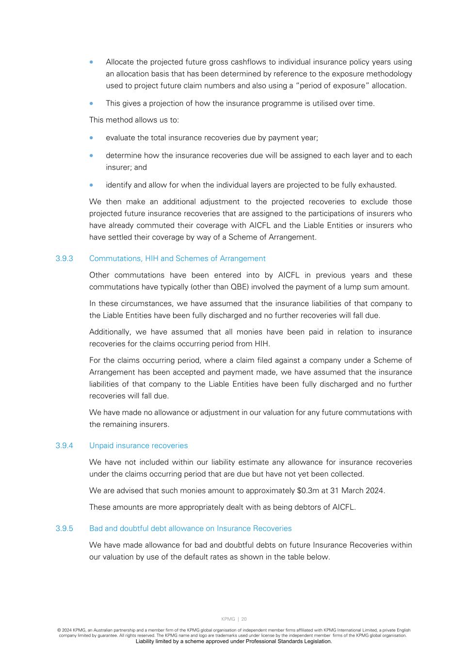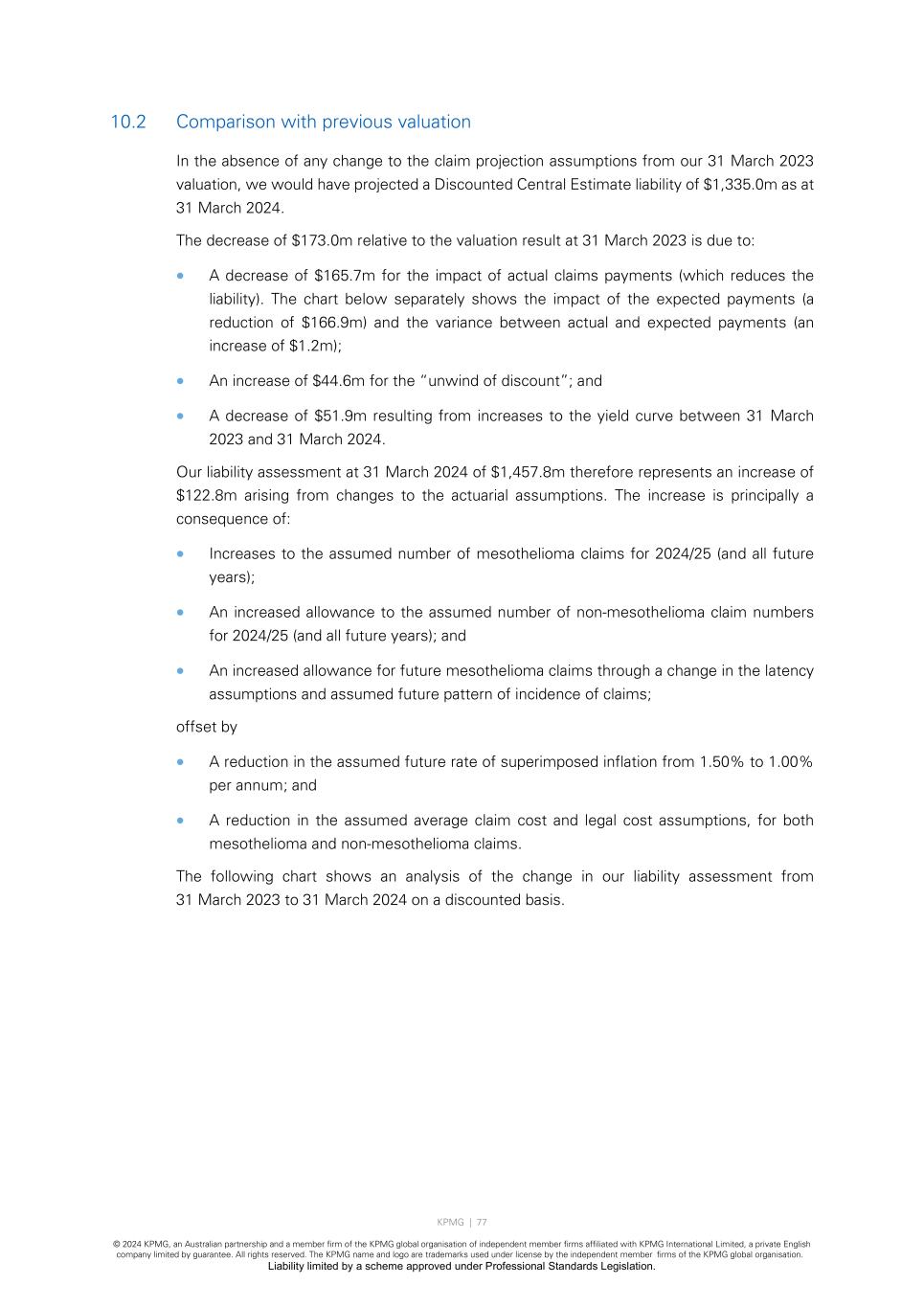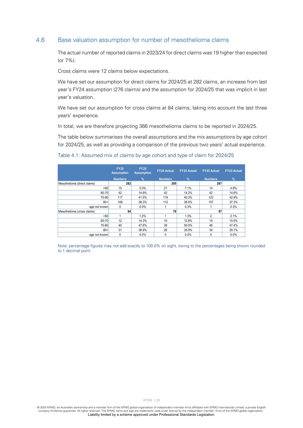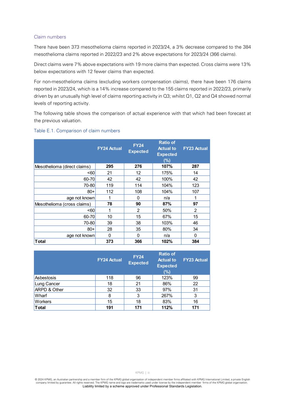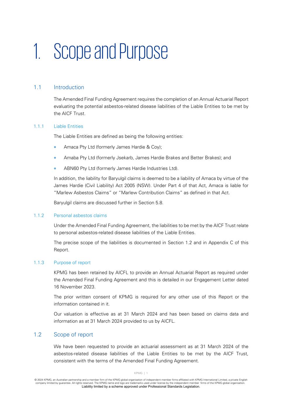•expectations about the timing and amount of contributions to AICF, a special purpose fund for the compensation of proven Australian asbestos-related personal injury and death claims;