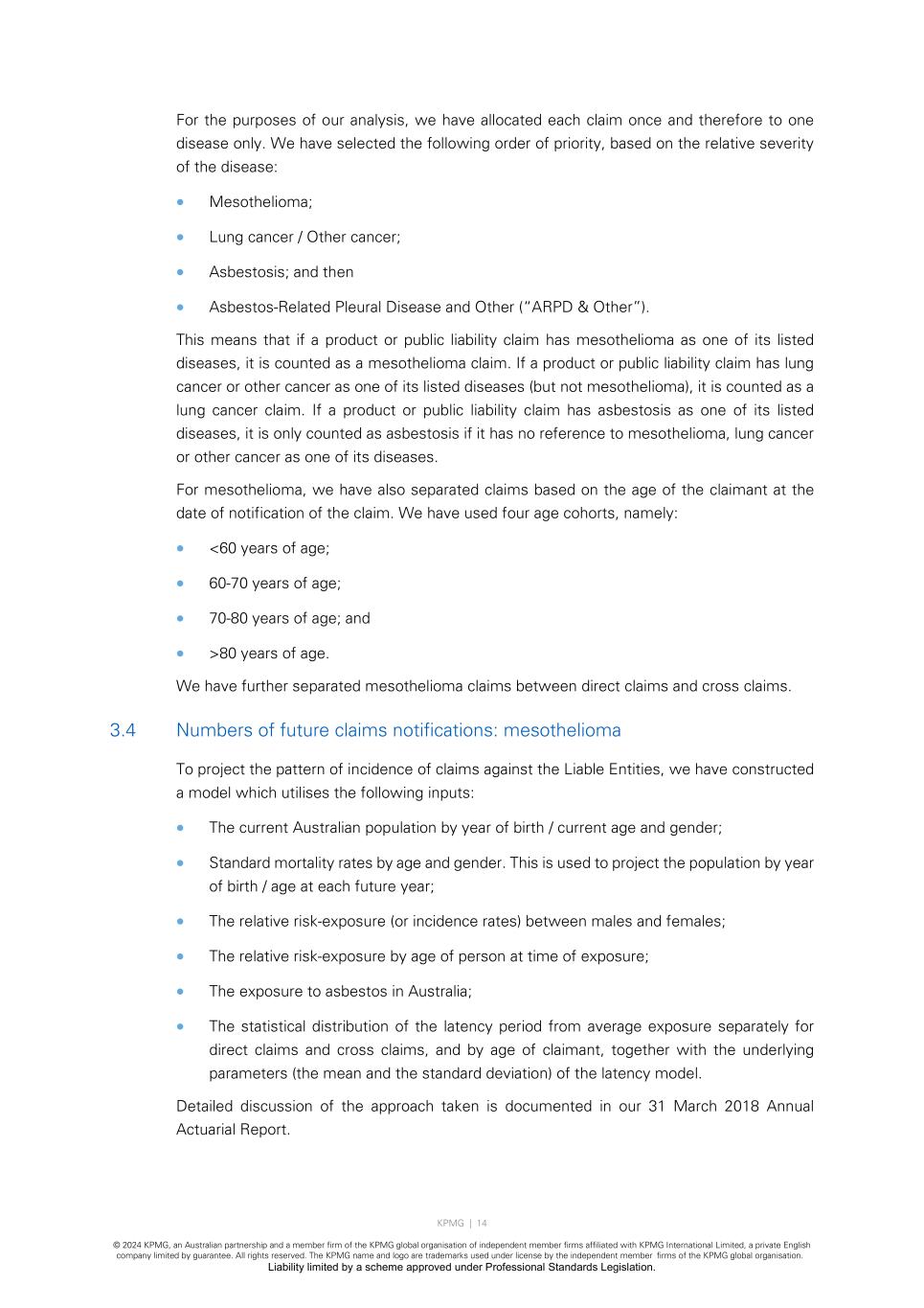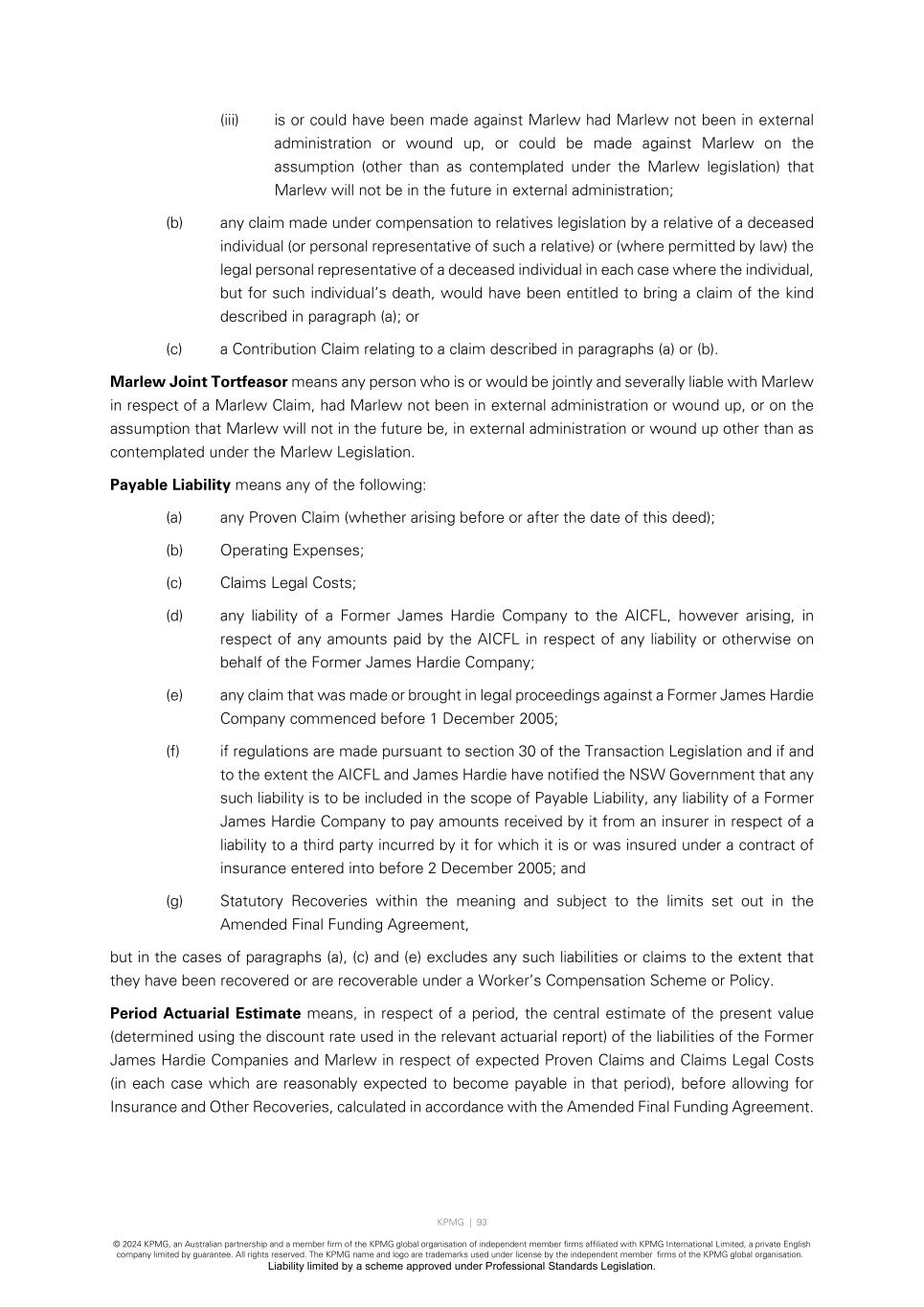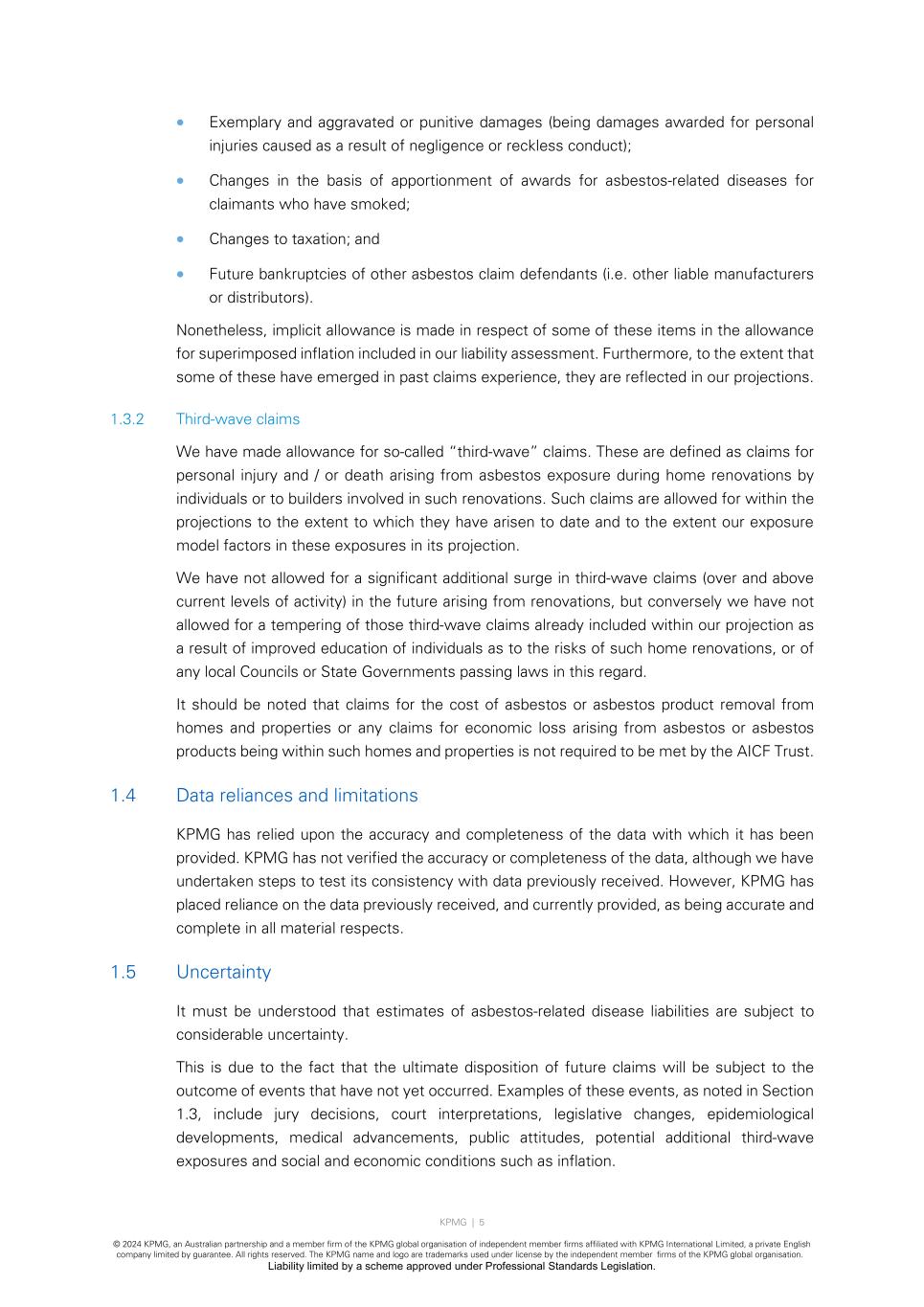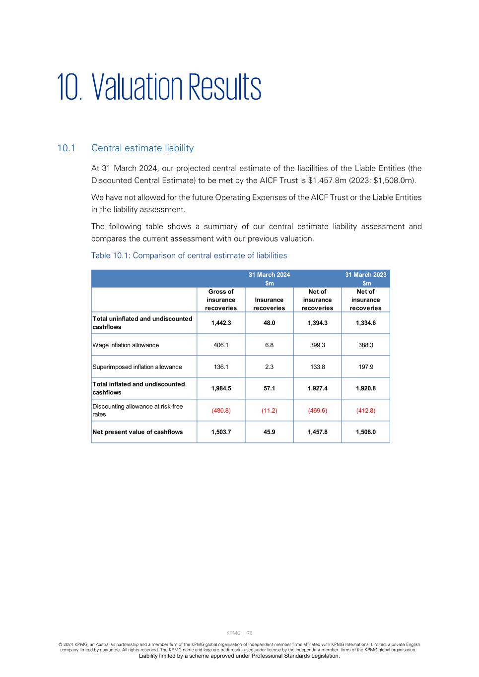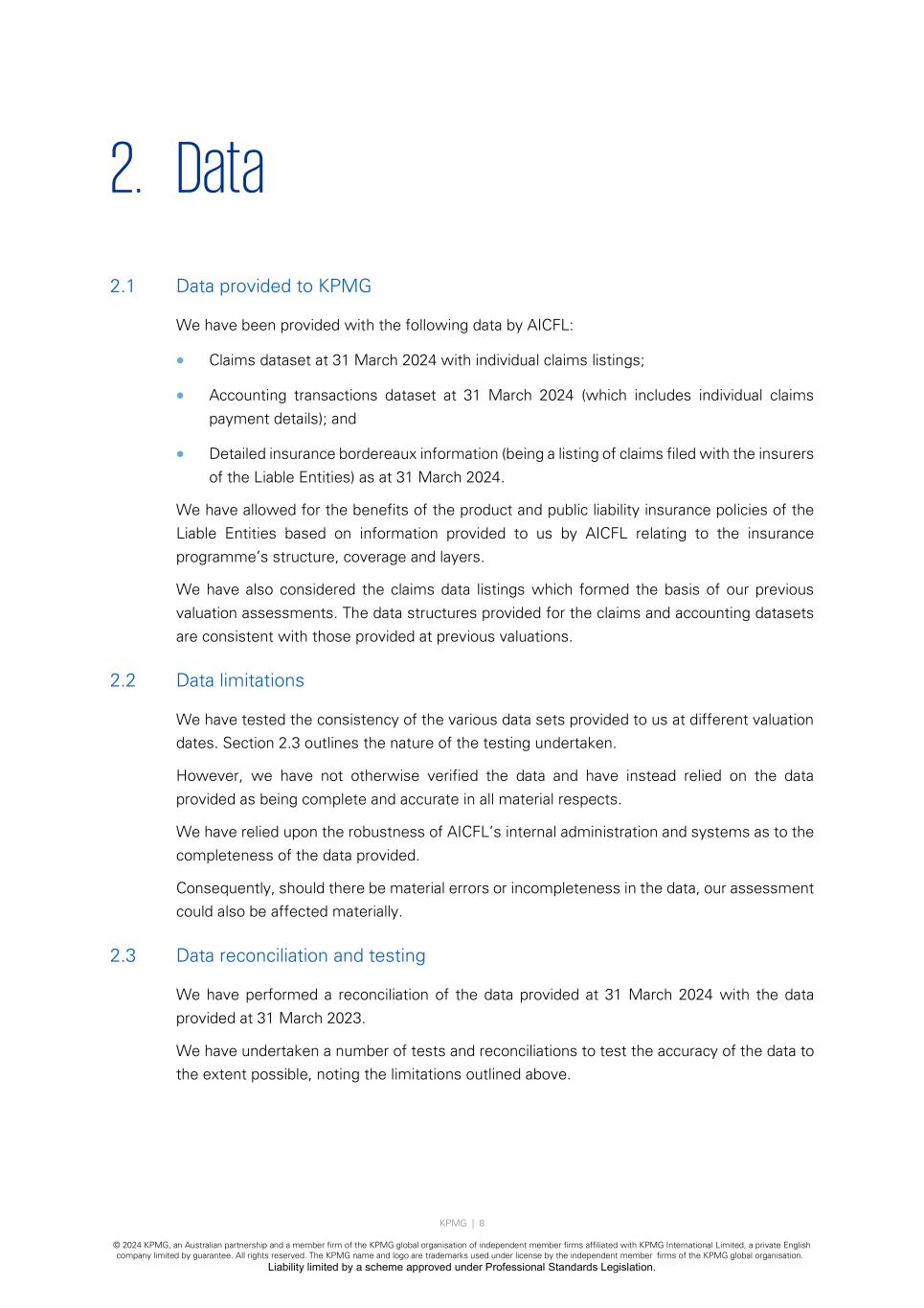 •expectations about the timing and amount of contributions to AICF, a special purpose fund for the compensation of proven Australian asbestos-related personal injury and death claims;