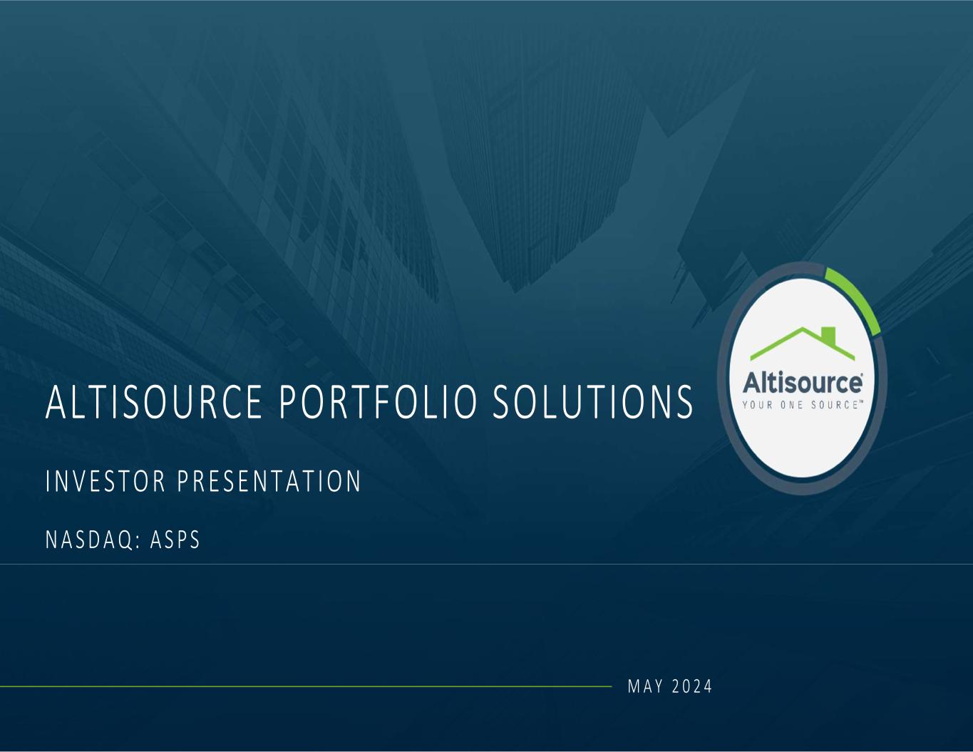 I N V E S T O R P R E S E N T A T I O N N A S D A Q : A S P S ALTISOURCE PORTFOLIO SOLUTIONS M A Y 2 0 2 4
