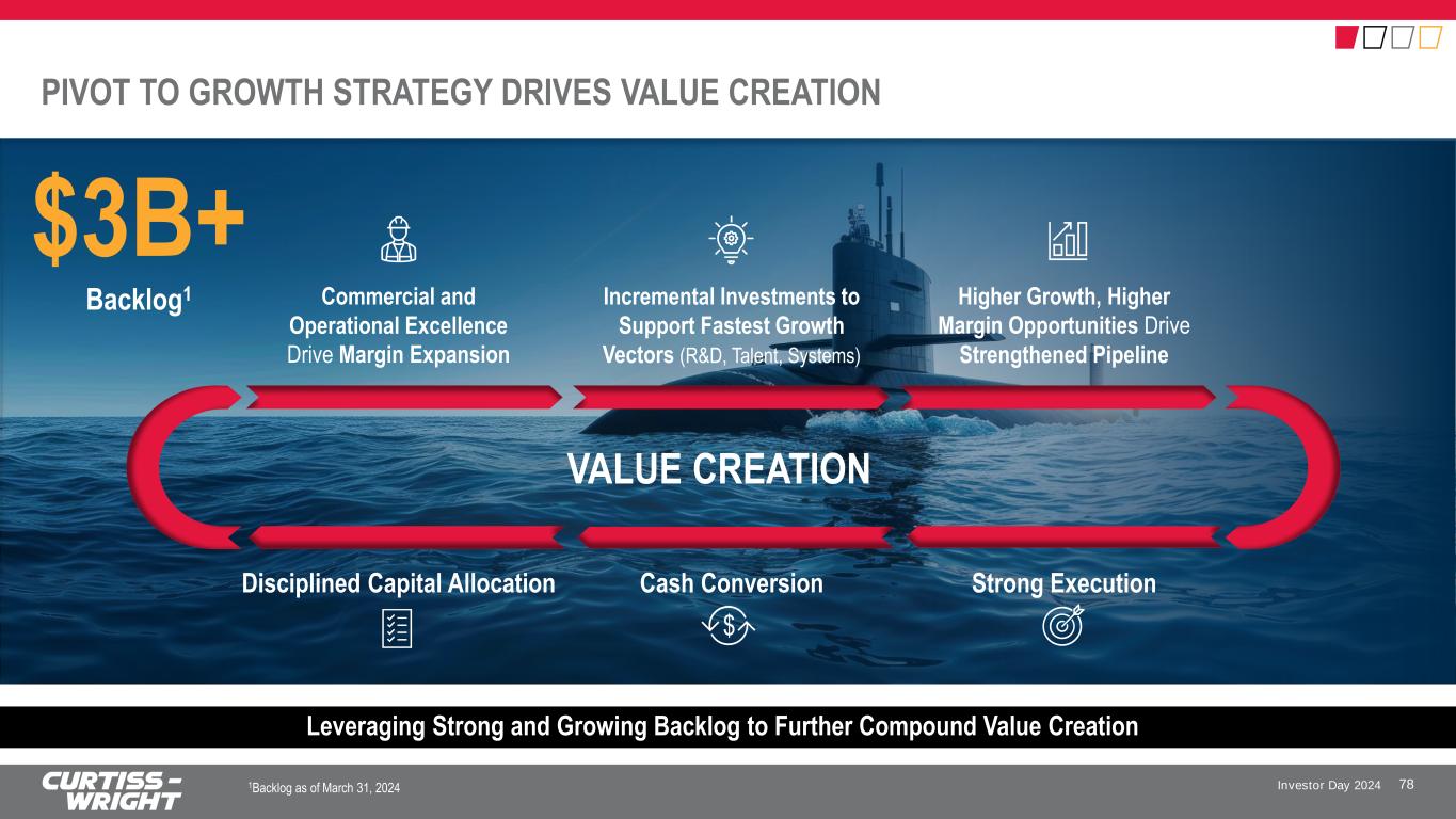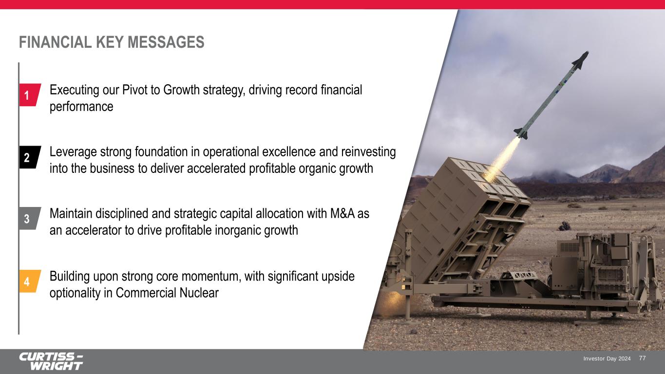 Investor Day 2024 4 1 2 3 Building upon strong core momentum, with significant upside optionality in Commercial Nuclear FINANCIAL KEY MESSAGES 77 Executing our Pivot to Growth strategy, driving record financial performance Leverage strong foundation in operational excellence and reinvesting into the business to deliver accelerated profitable organic growth Maintain disciplined and strategic capital allocation with M&A as an accelerator to drive profitable inorganic growth