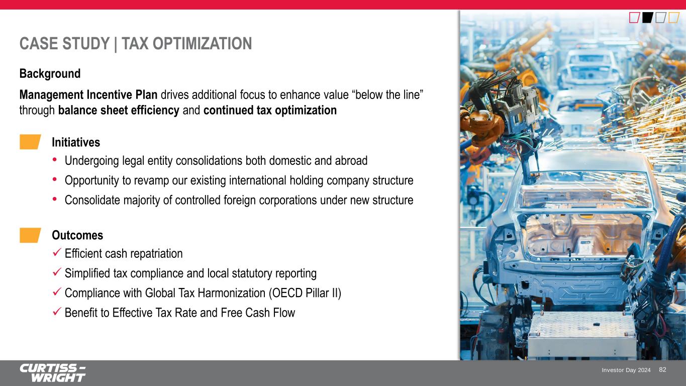Investor Day 2024 CASE STUDY | TAX OPTIMIZATION Background Management Incentive Plan drives additional focus to enhance value “below the line” through balance sheet efficiency and continued tax optimization 82 Initiatives • Undergoing legal entity consolidations both domestic and abroad • Opportunity to revamp our existing international holding company structure • Consolidate majority of controlled foreign corporations under new structure Outcomes ✓ Efficient cash repatriation ✓ Simplified tax compliance and local statutory reporting ✓ Compliance with Global Tax Harmonization (OECD Pillar II) ✓ Benefit to Effective Tax Rate and Free Cash Flow