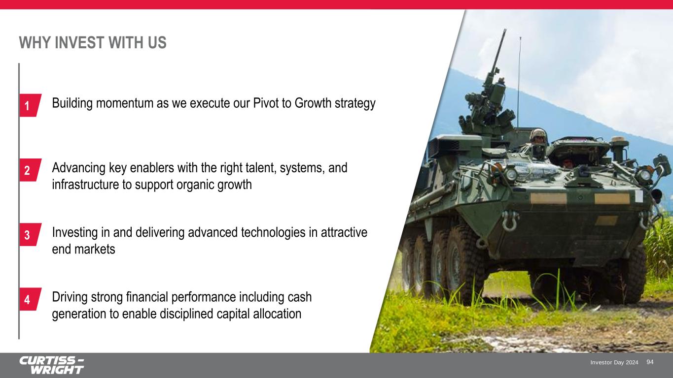 Investor Day 2024 Driving strong financial performance including cash generation to enable disciplined capital allocation 4 WHY INVEST WITH US 94 Building momentum as we execute our Pivot to Growth strategy1 Advancing key enablers with the right talent, systems, and infrastructure to support organic growth 2 Investing in and delivering advanced technologies in attractive end markets 3