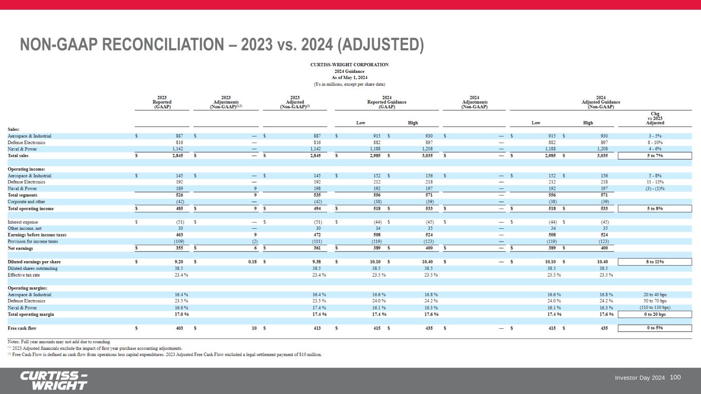 Investor Day 2024 NON-GAAP RECONCILIATION – 2023 vs. 2024 (ADJUSTED) 100