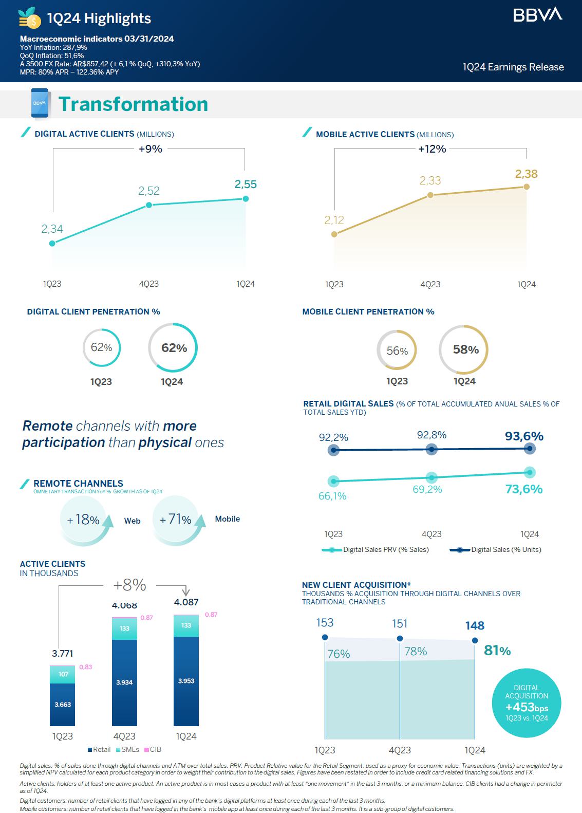 On digitalization, our service offering has evolved in such way that by the end of March 2024, mobile monetary transactions increased 71% compared to the same period a year back. In the quarter, new client acquisition through digital channels over traditional ones was 81%, while in March 2023 it was 76%.