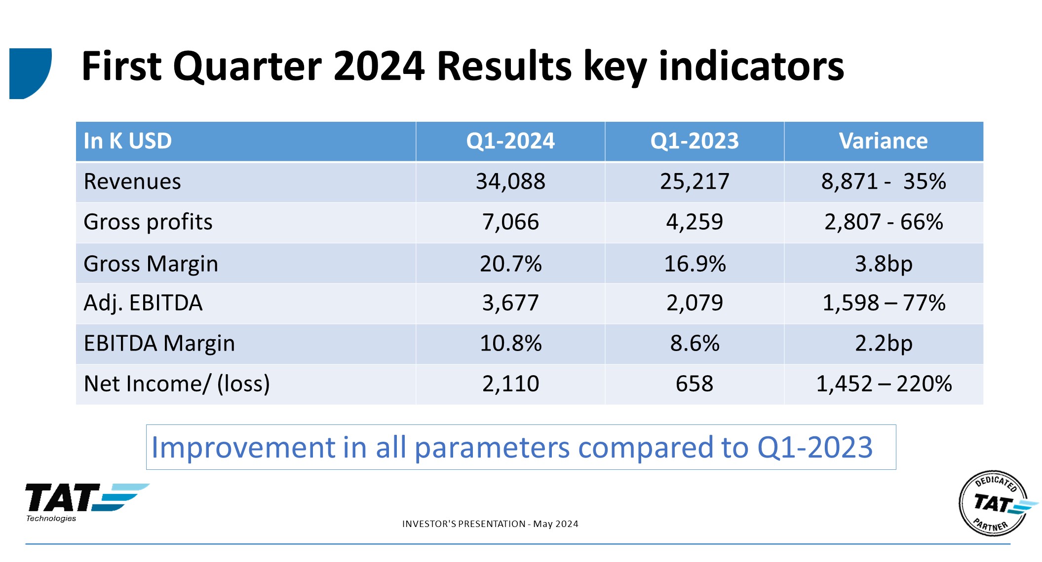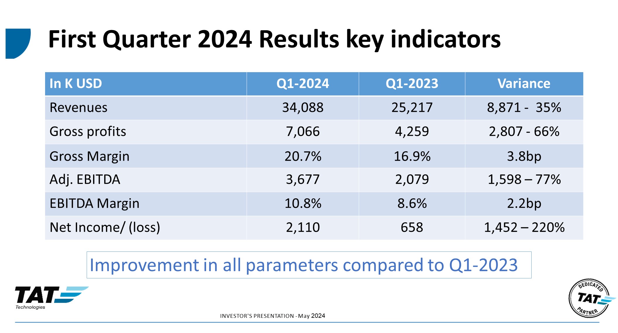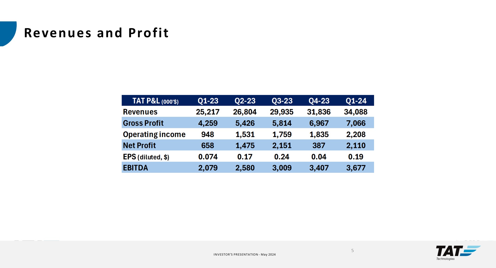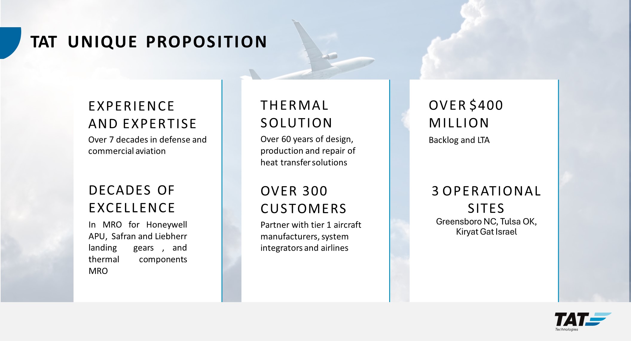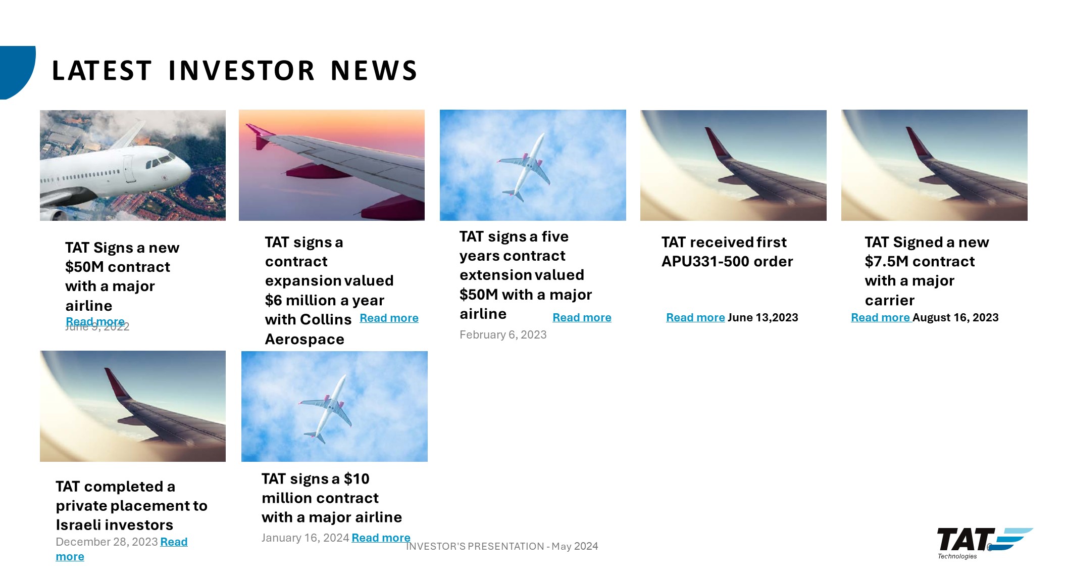 TAT Technologies Ltd. (the "Company") hereby furnishes its investors presentation, which is