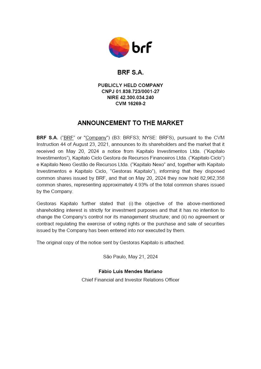 | 1 | ANNOUNCEMENT TO THE MARKET |