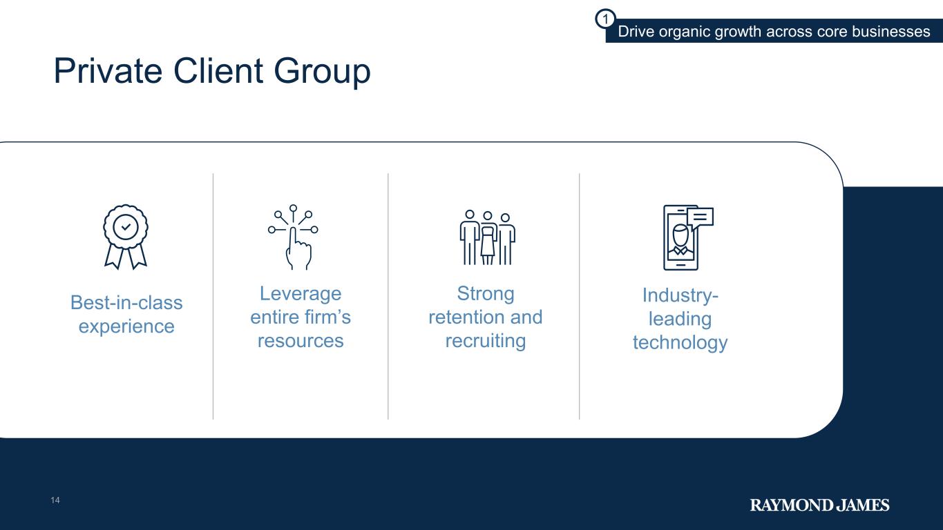 Best-in-class experience Leverage entire firm’s resources Strong retention and recruiting Industry- leading technology Drive organic growth across core businesses 1 Private Client Group 14