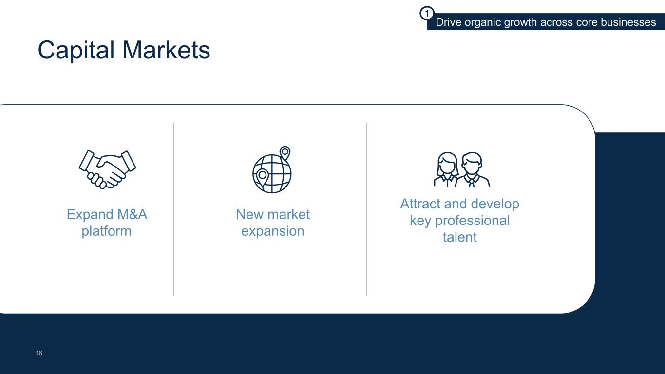 Drive organic growth across core businesses 1 Expand M&A platform New market expansion Attract and develop key professional talent Capital Markets 16