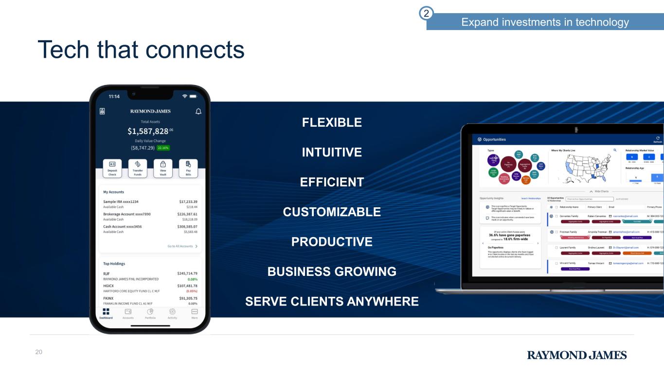 Expand investments in technology 2 Tech that connects FLEXIBLE INTUITIVE EFFICIENT CUSTOMIZABLE PRODUCTIVE BUSINESS GROWING SERVE CLIENTS ANYWHERE 20