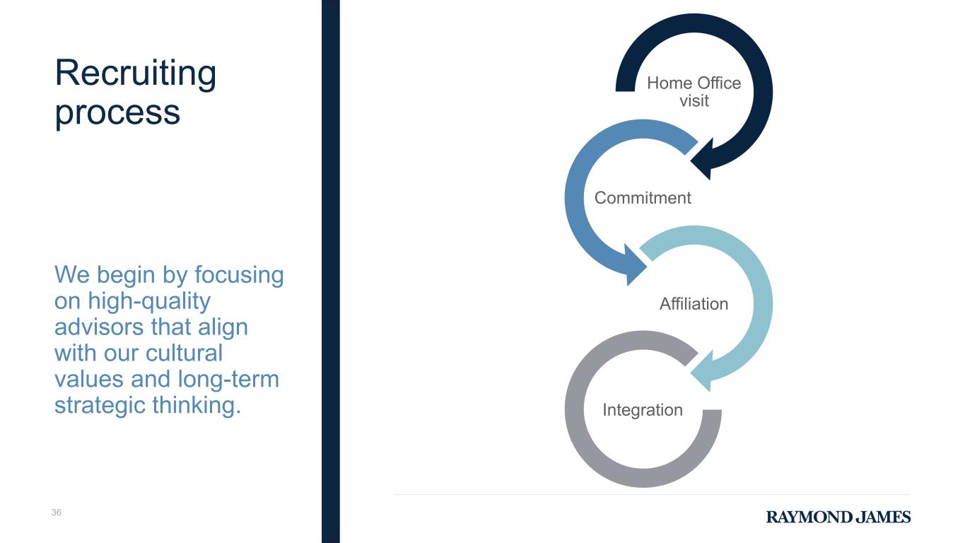 Recruiting process Home Office visit Commitment Affiliation Integration We begin by focusing on high-quality advisors that align with our cultural values and long-term strategic thinking. 36