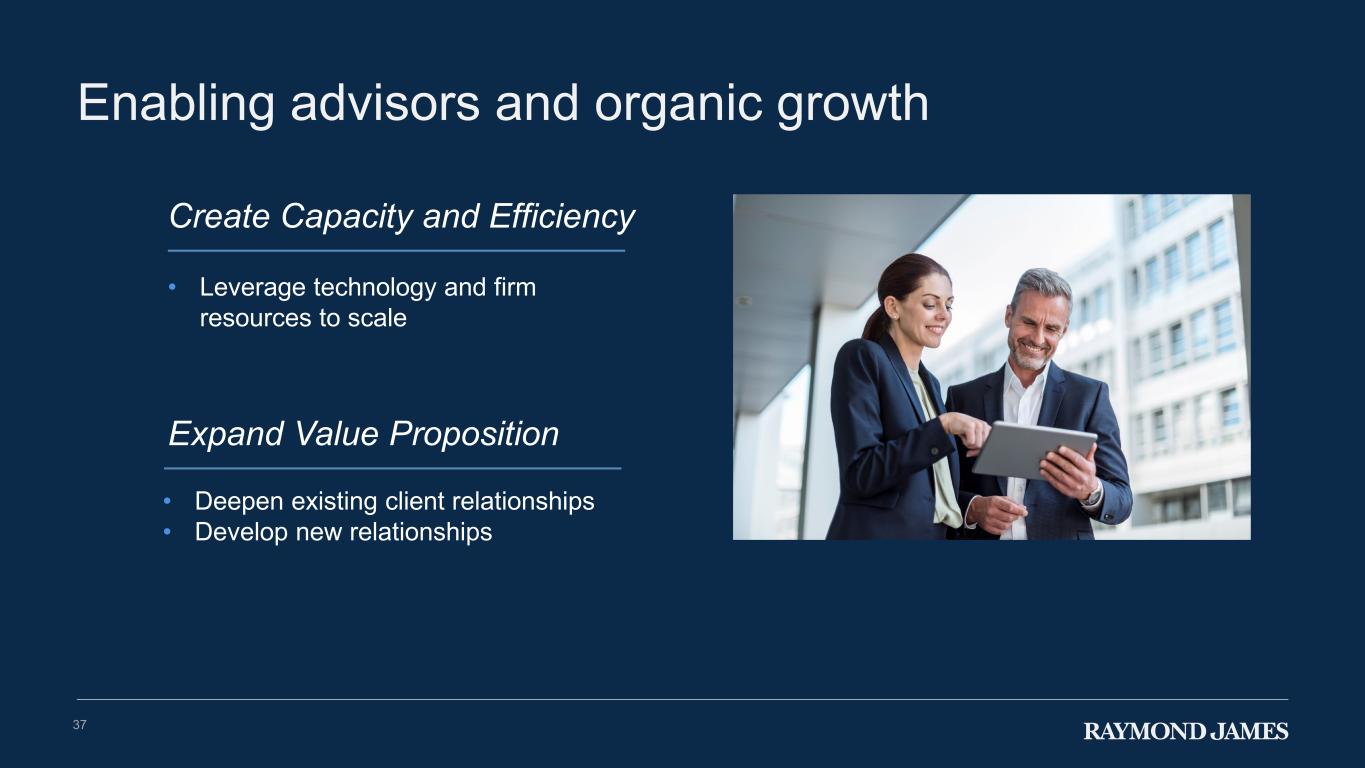 Enabling advisors and organic growth Create Capacity and Efficiency • Leverage technology and firm resources to scale Expand Value Proposition • Deepen existing client relationships • Develop new relationships 37