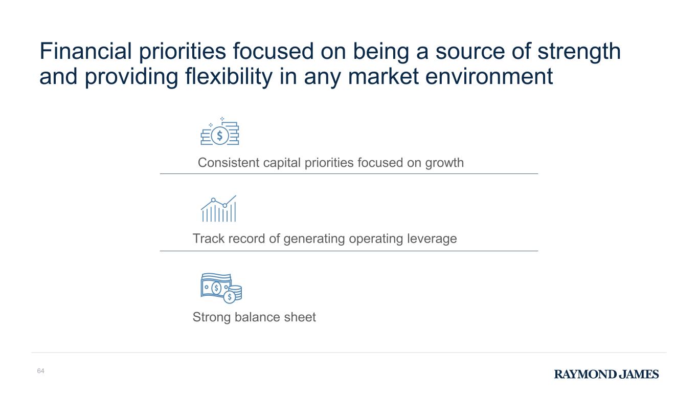 Consistent capital priorities focused on growth Track record of generating operating leverage Strong balance sheet Financial priorities focused on being a source of strength and providing flexibility in any market environment 64