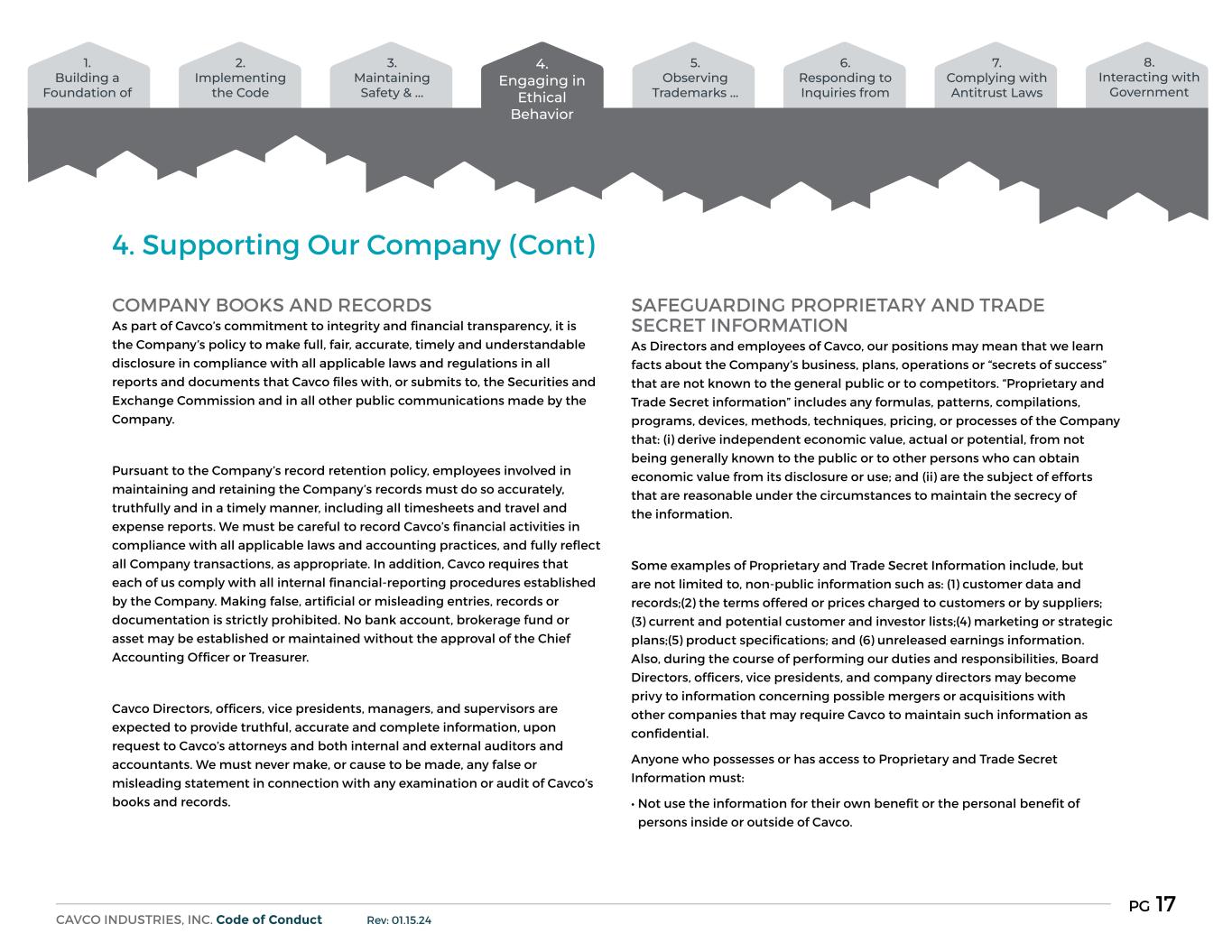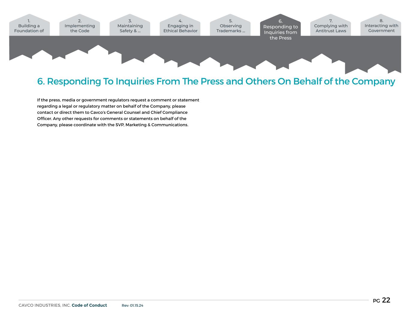 The Board of Directors (the “Board”) of Cavco Industries, Inc. (the “Company”) believes that it is in the best interest of the Company and its shareholders to adopt this Clawback Policy (the “Policy”) providing for the recoupment from certain Covered Executives (as defined below) of Incentive Compensation (as defined below) in the event of an accounting restatement (as described below) [or the occurrence of the other clawback events] described below. The Policy intends to comply with Section 10D of the Securities Exchange Act of 1934 (the "Exchange Act"), the rules of the Securities and Exchange Commission (“SEC”) thereto and applicable Nasdaq listing standards.