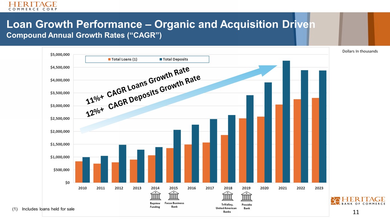 Loan Growth Performance – Organic and Acquisition Driven Compound Annual Growth Rates (“CAGR”) 11 (1) Includes loans held for sale Dollars In thousands