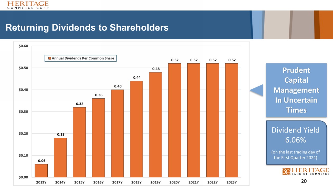 Returning Dividends to Shareholders Prudent Capital Management In Uncertain Times 20 Dividend Yield 6.06% (on the last trading day of the First Quarter 2024)