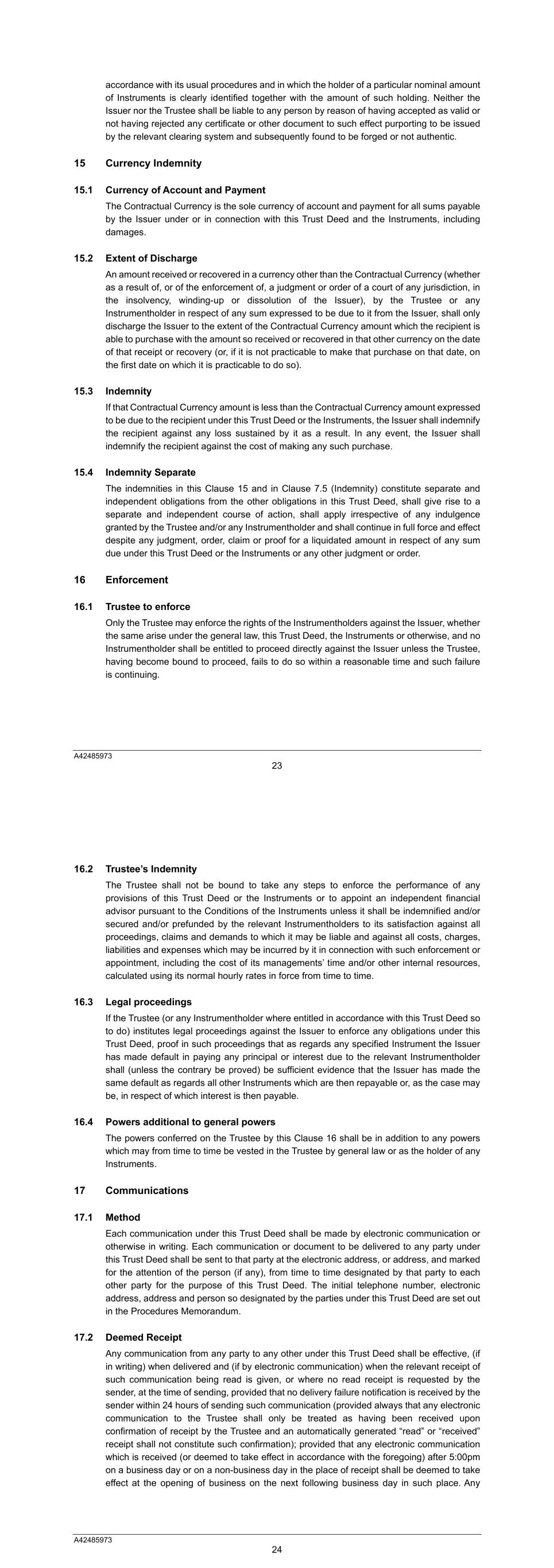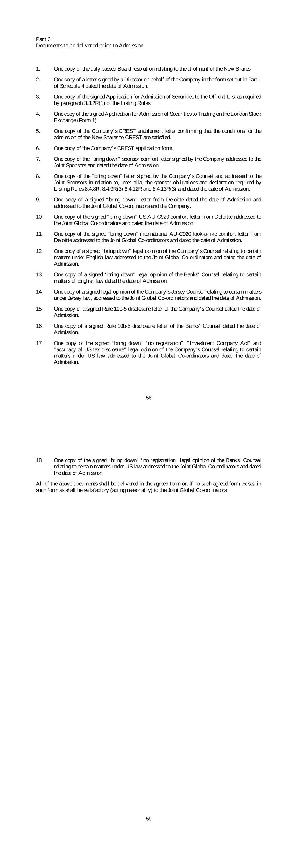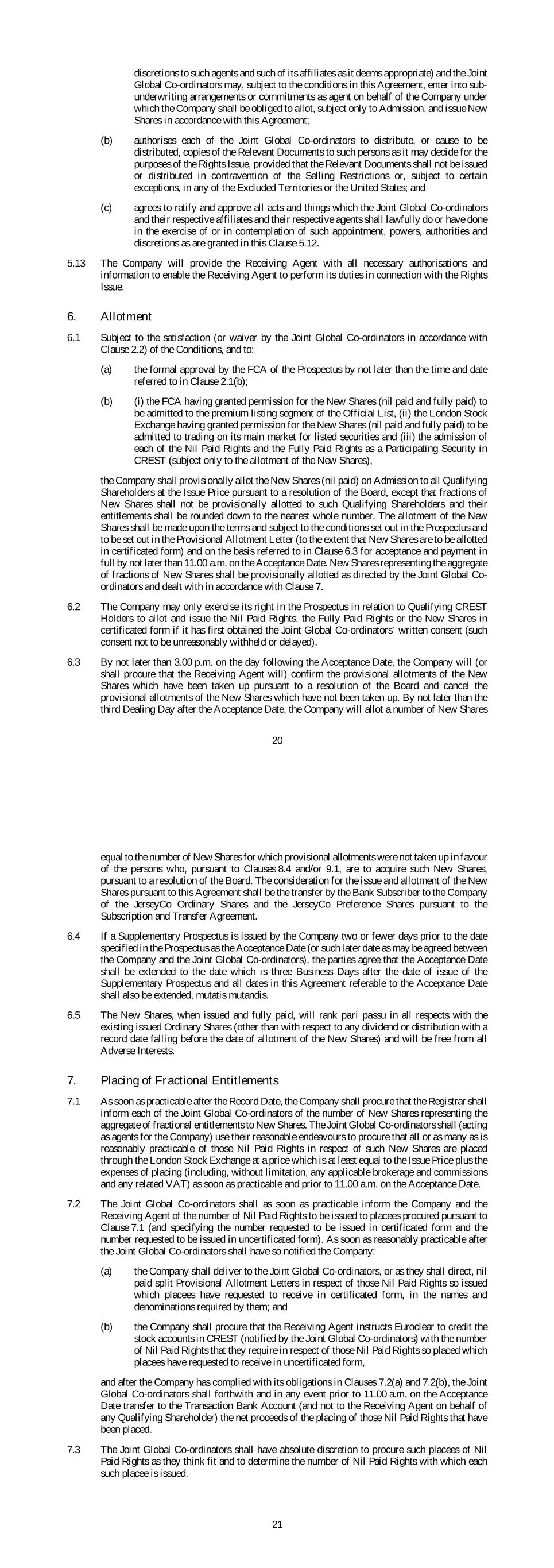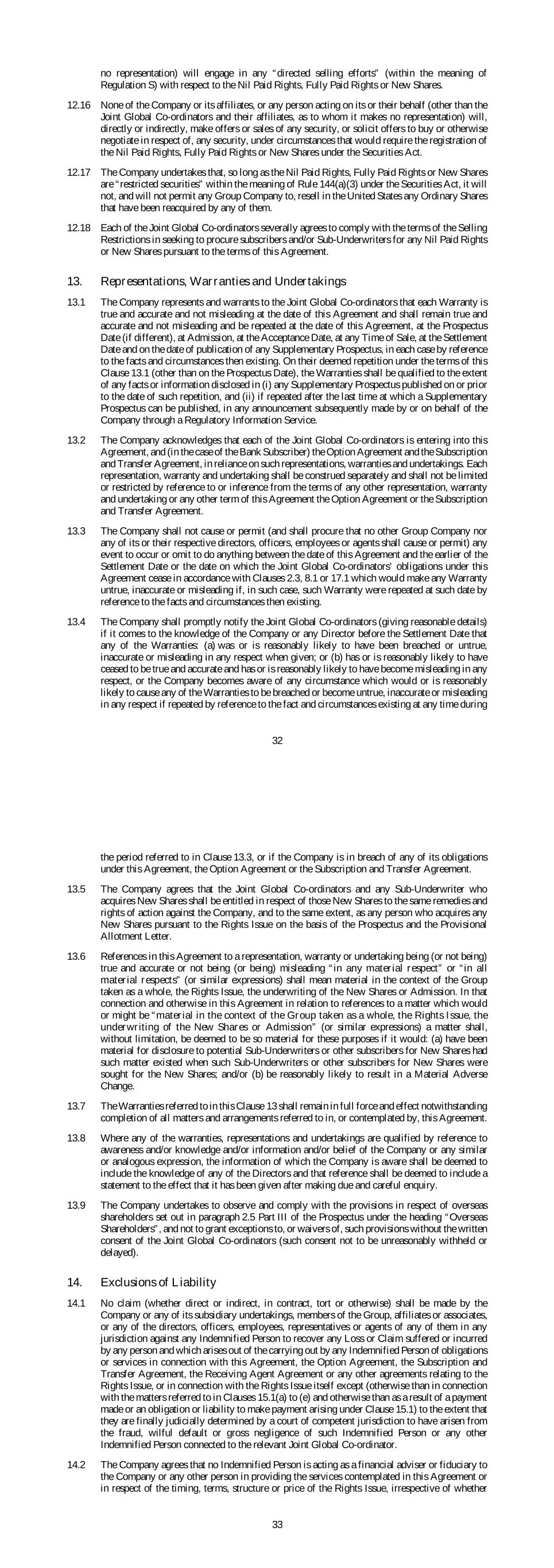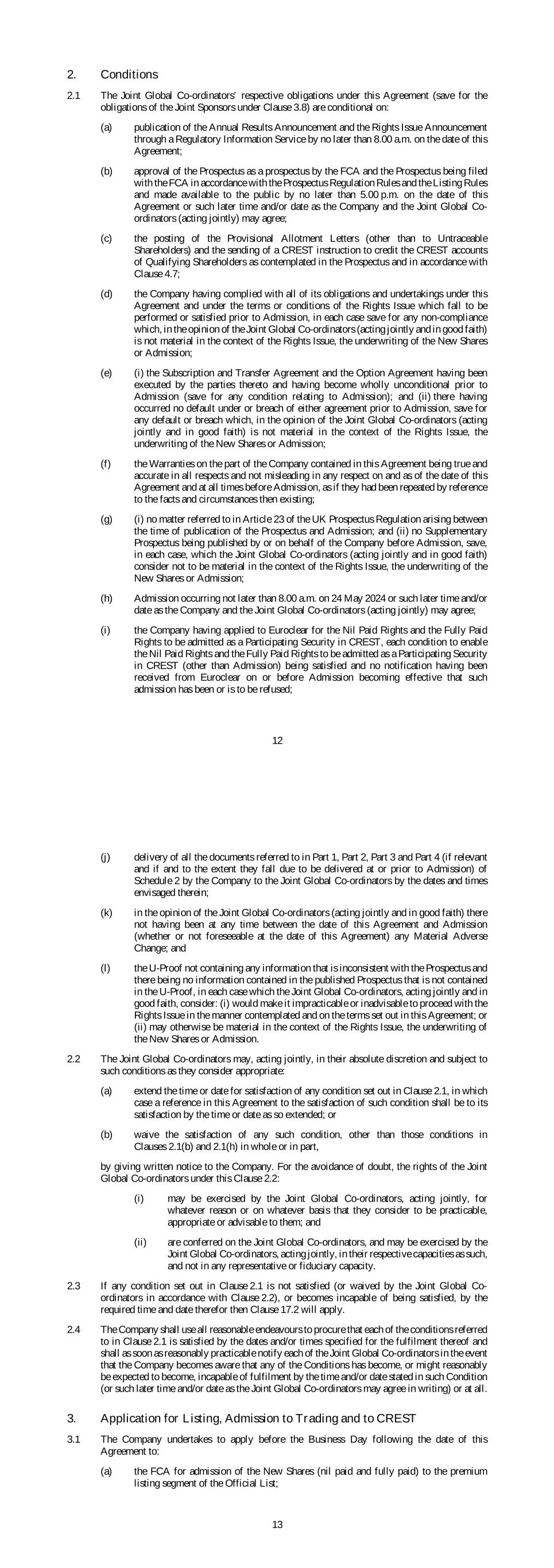 Final/Linklaters LLP/06/11/2023 A52293244 3 4 RECOVERY OF ERRONEOUSLY AWARDED INCENTIVE-BASED COMPENSATION 4.1 In the event that the Company is required to prepare an accounting restatement due to the material noncompliance of the Company with any financial reporting requirement under the securities laws (as used in Section 303A.14 of the NYSE Listed Company Manual) (a “Restatement”), including any required accounting restatement to correct an error in previously issued financial statements that is material to the previously issued financial statements, or that would result in a material misstatement if the error were corrected in the current period or left uncorrected in the current period, the Remuneration Committee shall recover reasonably promptly the amount of Incentive-Based Compensation Received by an Executive in the Recovery Period that exceeds the amount of Incentive-Based Compensation that otherwise would have been Received by the Executive had such remuneration been determined based on the restated amounts, computed without regard to any Taxes paid or payable (the “Recoverable Amount”). The Recoverable Amount shall not exceed the differential between the amount of Incentive-Based Compensation paid to such Executive in connection with the Restatement and the amount of Incentive-Based Compensation that would have been paid to such Executive had the Restatement not occurred (in each case without regard to any Taxes paid or payable). Where Incentive-Based Compensation is based only in part on the achievement of a Financial Reporting Measure performance goal, the Remuneration Committee shall first determine the portion of the original Incentive-Based Compensation based on or derived from the Financial Reporting Measure that was restated. The Remuneration Committee shall then recalculate the affected portion based on the Financial Reporting Measure as restated, and recover the difference between the greater amount based on the original financial statements and the lesser amount that would have been received based on the restatement. Final/Linklaters LLP/06/11/2023 A52293244 4 4.2 Whether a Restatement has occurred for the purposes of this Policy shall be confirmed by the Remuneration Committee, which shall rely on any decision in this respect of the Audit & Risk Committee. 4.3 For Incentive-Based Compensation based on share price or total shareholder return, where the Recoverable Amount is not subject to mathematical recalculation directly from the information in the Restatement, the Remuneration Committee will determine the Recoverable Amount based on the Remuneration Committee’s reasonable estimate of the effect of the Restatement on the share price or total shareholder return upon which the Incentive-Based Compensation was received. The Company must maintain documentation of the determination of that reasonable estimate and provide such documentation to the NYSE. 4.4 In the event that the Company is required to prepare a Restatement, the Remuneration Committee shall: 4.4.1 determine the Recoverable Amount in accordance with Section 4.1 of this Policy; and 4.4.2 to the extent the Recoverable Amount has been Received by an Executive, instruct the Company to recover reasonably promptly the full Recoverable Amount in accordance with Section 4.5 of this Policy; or 4.4.3 to the extent the Recoverable Amount has not been Received, but is otherwise owed to an Executive, cancel the right of such Executive to receive the Recoverable Amount. 4.5 To the extent permitted by Applicable Law, the Remuneration Committee may seek to recoup Recoverable Amounts by all legal means available, including but not limited to: 4.5.1 lapsing, reducing, cancelling or forfeiting any outstanding Incentive-Based Compensation under which cash, Ordinary Shares and/or ADSs may be (or otherwise become) due to such affected Executive; 4.5.2 reducing the amount of any future remuneration of such affected Executive; 4.5.3 forfeiting, in whole or in part, cash, Ordinary Shares and/or ADSs being held on behalf of such affected Executive in any retention arrangement in connection with any incentive plan, deferred bonus plan or discretionary bonus arrangement operated by any member of the Group; 4.5.4 making a deduction from any payment otherwise due to such affected Executive (known as “set off”); 4.5.5 claiming repayment of an amount directly from such affected Executive (in cash, Ordinary Shares and/or ADSs) which such affected Executive must repay on receipt of a written request; or 4.5.6 by such other means or combination of means as the Remuneration Committee, in its sole discretion, determines to be appropriate.