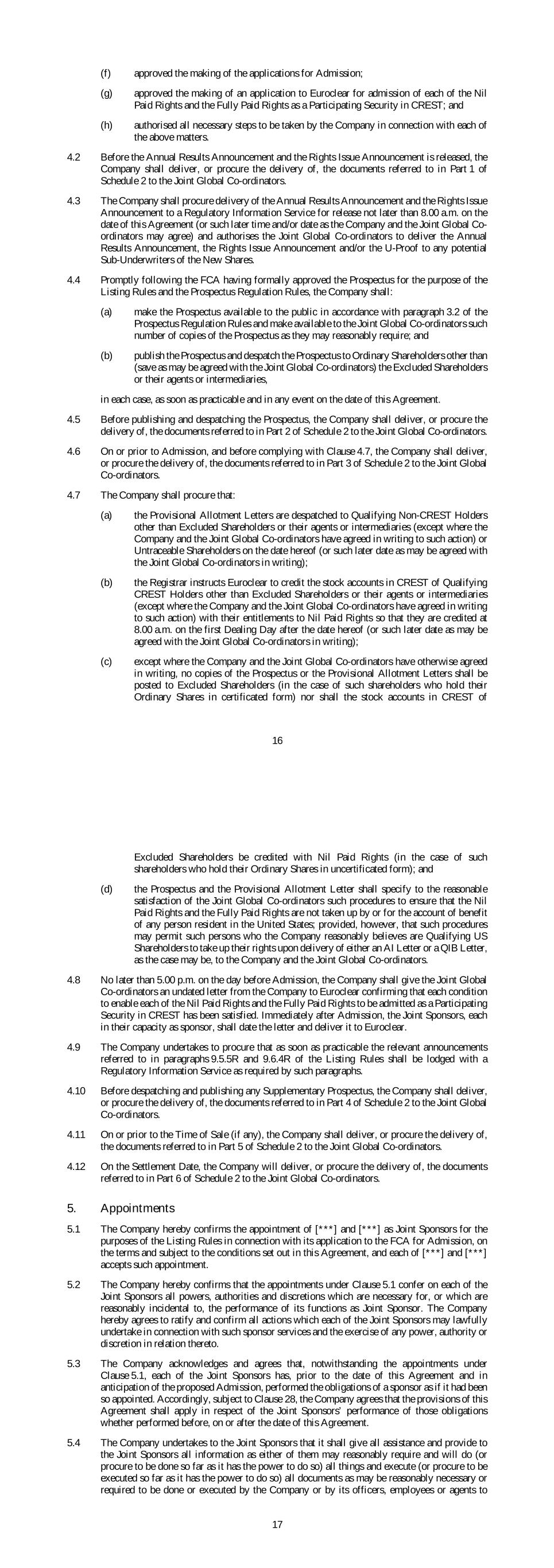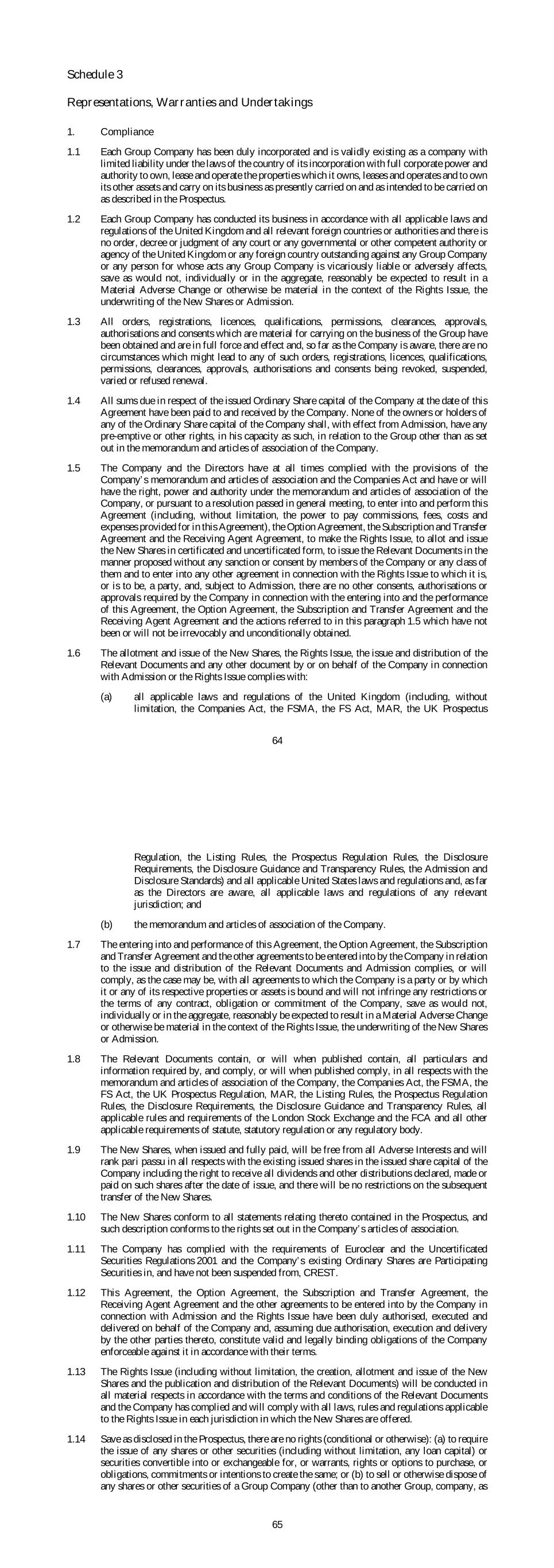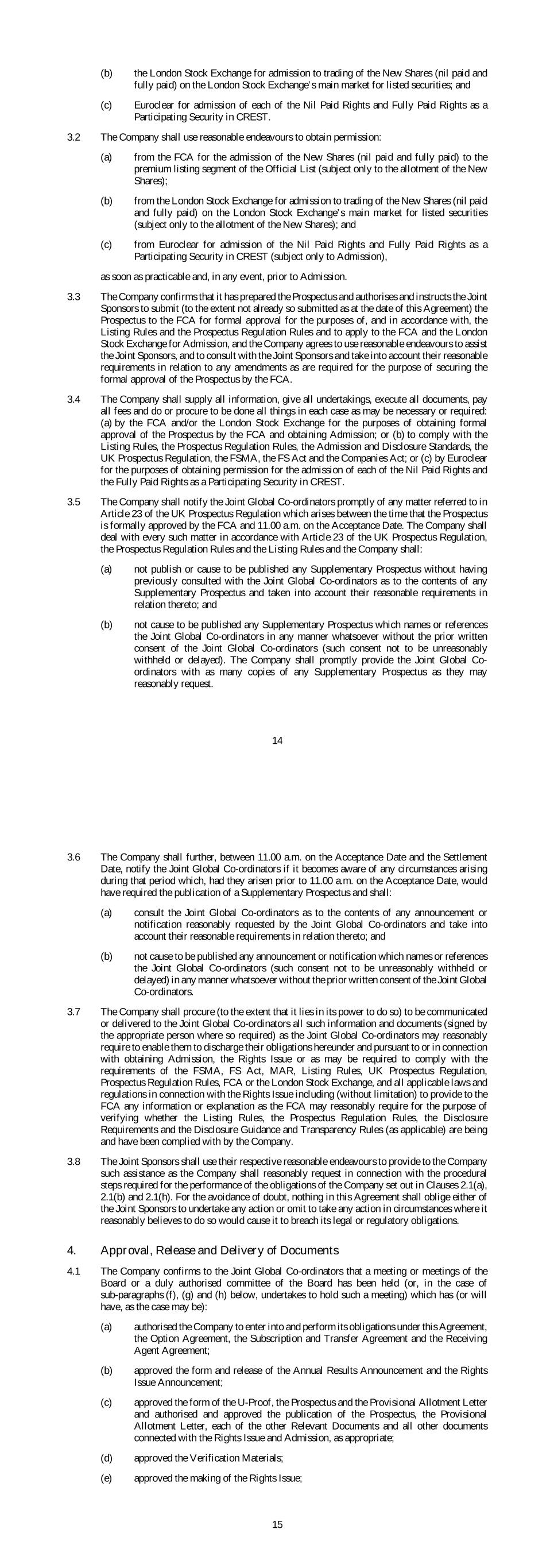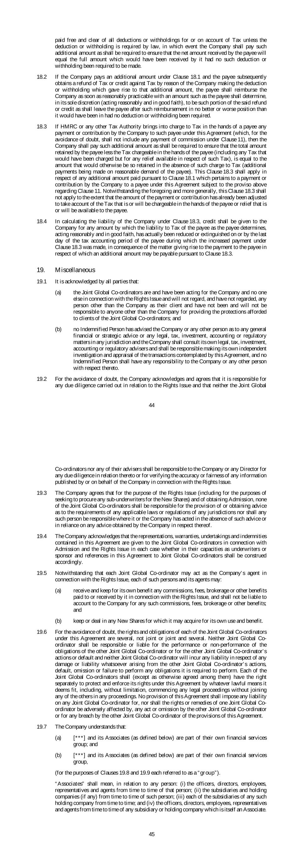 Final/Linklaters LLP/06/11/2023 A52293244 3 4 RECOVERY OF ERRONEOUSLY AWARDED INCENTIVE-BASED COMPENSATION 4.1 In the event that the Company is required to prepare an accounting restatement due to the material noncompliance of the Company with any financial reporting requirement under the securities laws (as used in Section 303A.14 of the NYSE Listed Company Manual) (a “Restatement”), including any required accounting restatement to correct an error in previously issued financial statements that is material to the previously issued financial statements, or that would result in a material misstatement if the error were corrected in the current period or left uncorrected in the current period, the Remuneration Committee shall recover reasonably promptly the amount of Incentive-Based Compensation Received by an Executive in the Recovery Period that exceeds the amount of Incentive-Based Compensation that otherwise would have been Received by the Executive had such remuneration been determined based on the restated amounts, computed without regard to any Taxes paid or payable (the “Recoverable Amount”). The Recoverable Amount shall not exceed the differential between the amount of Incentive-Based Compensation paid to such Executive in connection with the Restatement and the amount of Incentive-Based Compensation that would have been paid to such Executive had the Restatement not occurred (in each case without regard to any Taxes paid or payable). Where Incentive-Based Compensation is based only in part on the achievement of a Financial Reporting Measure performance goal, the Remuneration Committee shall first determine the portion of the original Incentive-Based Compensation based on or derived from the Financial Reporting Measure that was restated. The Remuneration Committee shall then recalculate the affected portion based on the Financial Reporting Measure as restated, and recover the difference between the greater amount based on the original financial statements and the lesser amount that would have been received based on the restatement. Final/Linklaters LLP/06/11/2023 A52293244 4 4.2 Whether a Restatement has occurred for the purposes of this Policy shall be confirmed by the Remuneration Committee, which shall rely on any decision in this respect of the Audit & Risk Committee. 4.3 For Incentive-Based Compensation based on share price or total shareholder return, where the Recoverable Amount is not subject to mathematical recalculation directly from the information in the Restatement, the Remuneration Committee will determine the Recoverable Amount based on the Remuneration Committee’s reasonable estimate of the effect of the Restatement on the share price or total shareholder return upon which the Incentive-Based Compensation was received. The Company must maintain documentation of the determination of that reasonable estimate and provide such documentation to the NYSE. 4.4 In the event that the Company is required to prepare a Restatement, the Remuneration Committee shall: 4.4.1 determine the Recoverable Amount in accordance with Section 4.1 of this Policy; and 4.4.2 to the extent the Recoverable Amount has been Received by an Executive, instruct the Company to recover reasonably promptly the full Recoverable Amount in accordance with Section 4.5 of this Policy; or 4.4.3 to the extent the Recoverable Amount has not been Received, but is otherwise owed to an Executive, cancel the right of such Executive to receive the Recoverable Amount. 4.5 To the extent permitted by Applicable Law, the Remuneration Committee may seek to recoup Recoverable Amounts by all legal means available, including but not limited to: 4.5.1 lapsing, reducing, cancelling or forfeiting any outstanding Incentive-Based Compensation under which cash, Ordinary Shares and/or ADSs may be (or otherwise become) due to such affected Executive; 4.5.2 reducing the amount of any future remuneration of such affected Executive; 4.5.3 forfeiting, in whole or in part, cash, Ordinary Shares and/or ADSs being held on behalf of such affected Executive in any retention arrangement in connection with any incentive plan, deferred bonus plan or discretionary bonus arrangement operated by any member of the Group; 4.5.4 making a deduction from any payment otherwise due to such affected Executive (known as “set off”); 4.5.5 claiming repayment of an amount directly from such affected Executive (in cash, Ordinary Shares and/or ADSs) which such affected Executive must repay on receipt of a written request; or 4.5.6 by such other means or combination of means as the Remuneration Committee, in its sole discretion, determines to be appropriate.