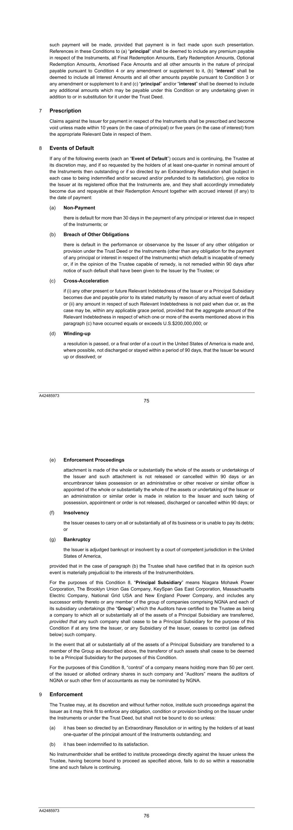 Each of the following securities issued by Niagara Mohawk Power Corporation, a wholly owned subsidiary of the Group, is unconditionally and fully guaranteed by National Grid plc: