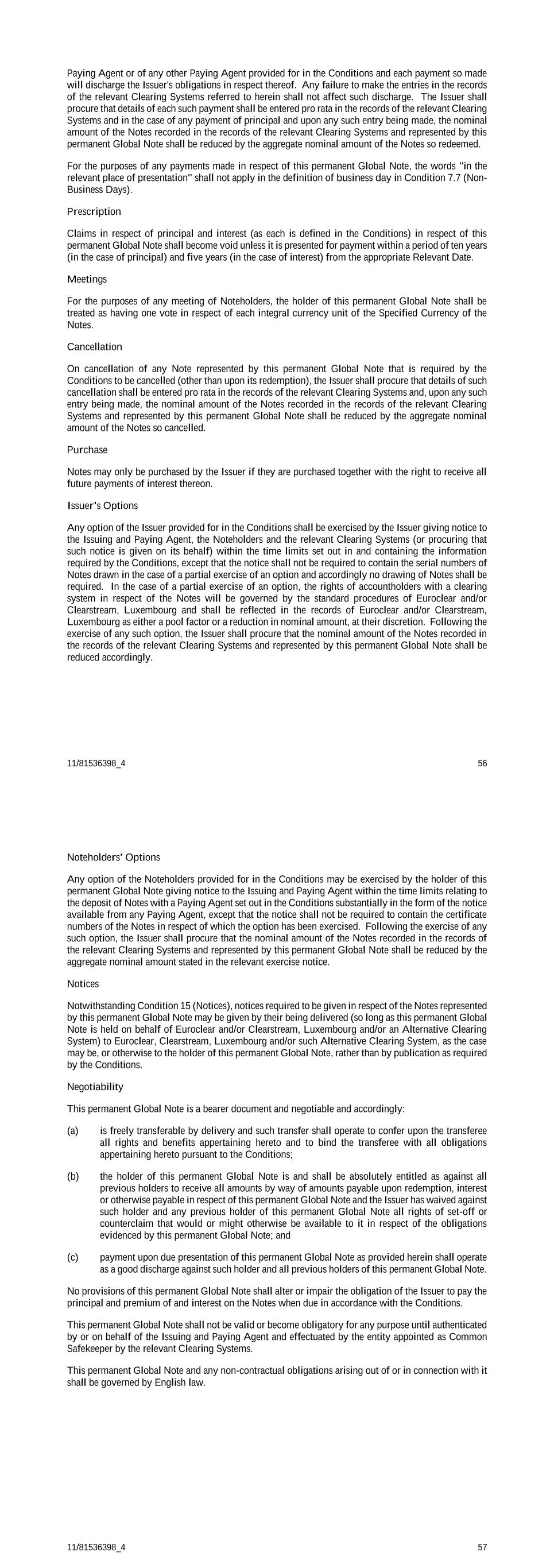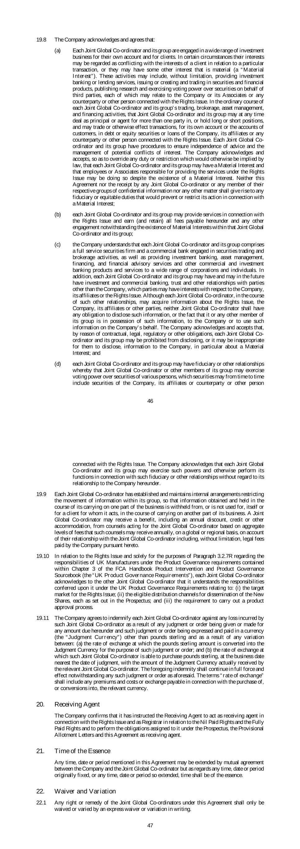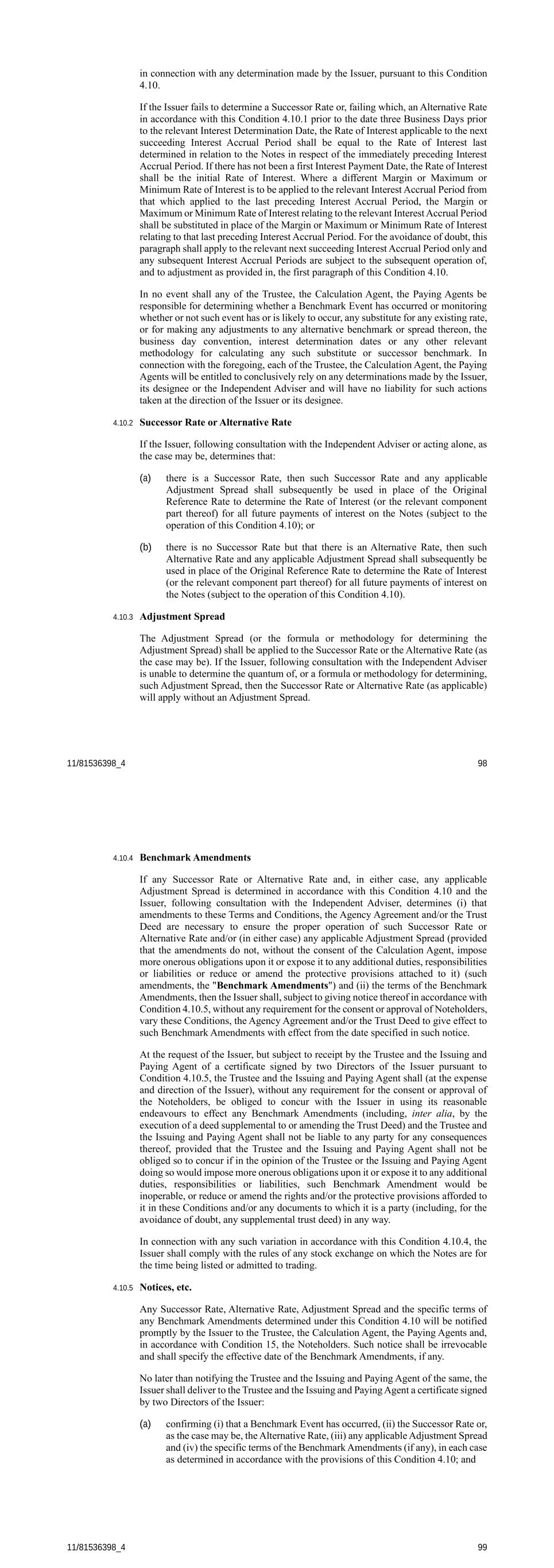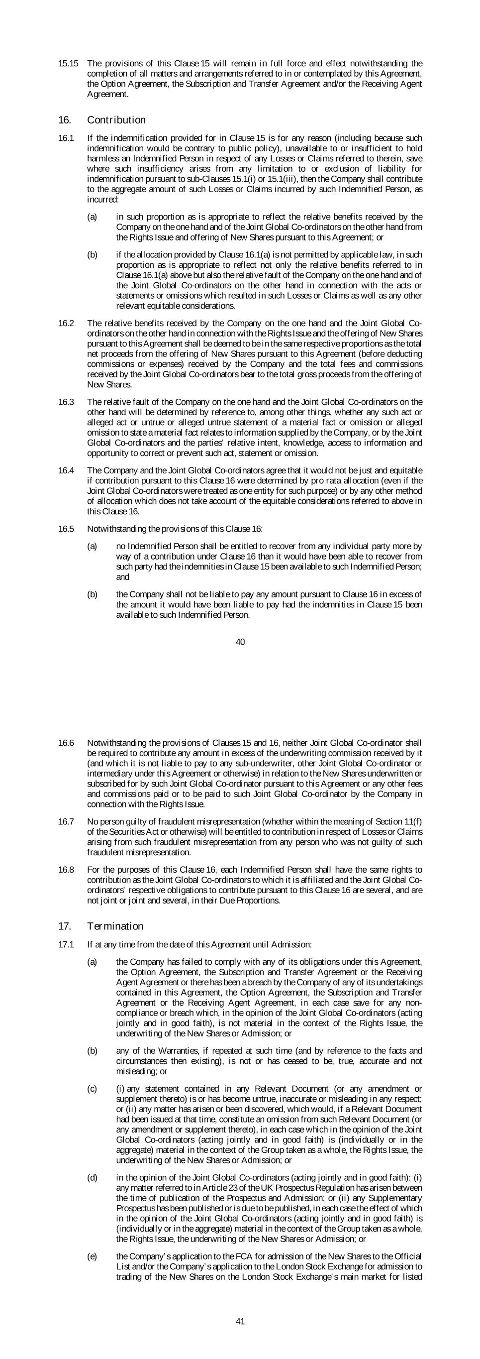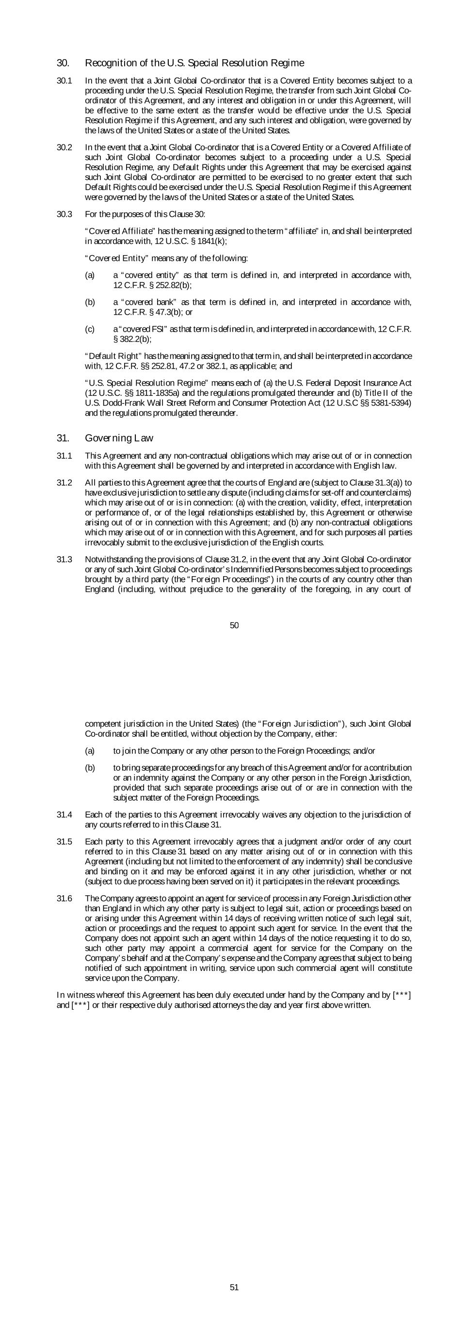 Final/Linklaters LLP/06/11/2023 A52293244 9 10.5.3 the operation, suspension, termination or amendment of this Policy. 10.6 The remedy specified in this Policy shall not be exclusive and shall be in addition to every other right or remedy at law or in equity that may be available to the Company or a member of the Group. 10.7 The terms of this Policy shall apply regardless of any agreement, undertaking or suggestion (or similar), whether or not contractual, that any remuneration shall not be subject to recovery. 10.8 Except as otherwise expressly stated to the contrary, nothing in this Policy confers any benefit, right or expectation on any persons other than an Executive or member of the Group. No third party has any rights under the UK Contracts (Rights of Third Parties) Act 1999 (or any similar local legislation in an overseas jurisdiction), to enforce any term of this Policy. 10.9 This Policy may be amended from time to time by the Remuneration Committee pursuant to Applicable Law. Executives will be notified of any significant amendments to this Policy and how such amendments may impact their remuneration. 10.10 If any provision of this Policy is for any reason held by any court or other competent authority of any jurisdiction to be illegal, invalid or unenforceable in whole or in part: 10.10.1 that provision shall, where possible, be deemed adjusted and apply in a manner that is legal, valid and enforceable in the relevant jurisdiction; and 10.10.2 the remaining provisions of this Policy shall continue to be valid and, if appropriate, the affected provision and the legality, validity or enforceability of such provision in any other jurisdiction shall be unaffected. 10.11 In the event of any discrepancy between this Policy and the provisions of any incentive plan, deferred bonus plan or discretionary bonus arrangement operated by any member of the Group or any arrangement applicable to an award or bonus under such plan or arrangement, this Policy will prevail. 10.12 The invalidity or unenforceability of any provision of this Policy shall not affect the validity or enforceability of any other provision. 10.13 The laws of England and Wales govern this Policy and its construction. The courts of England and Wales have exclusive jurisdiction in respect of disputes arising under or in connection with this Policy. 10.14 References in this Policy to the phrase “including” (or similar) shall not limit or prejudice the generality of the following words (without this being limited by such references in some clauses but not others). 10.15 In this Policy, the singular includes the plural and the plural includes the singular. References to any enactment or statutory requirement will be understood as references to that enactment or requirement as amended or re-enacted and they include any subordinate legislation made under it.