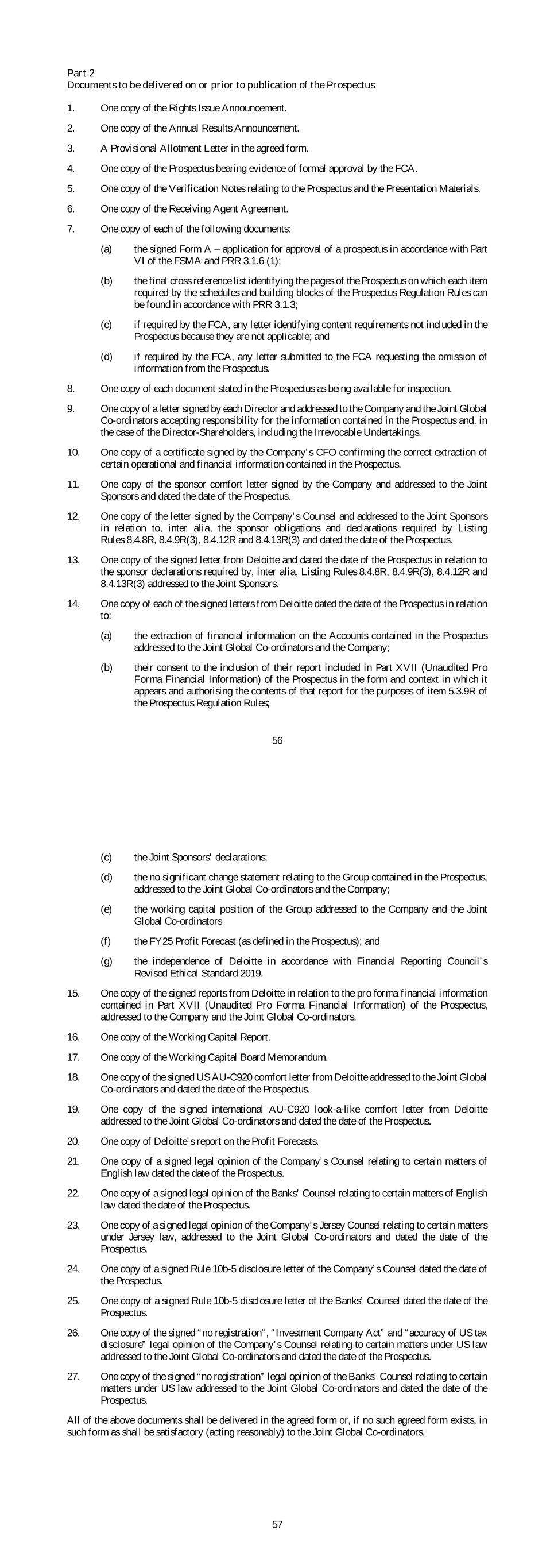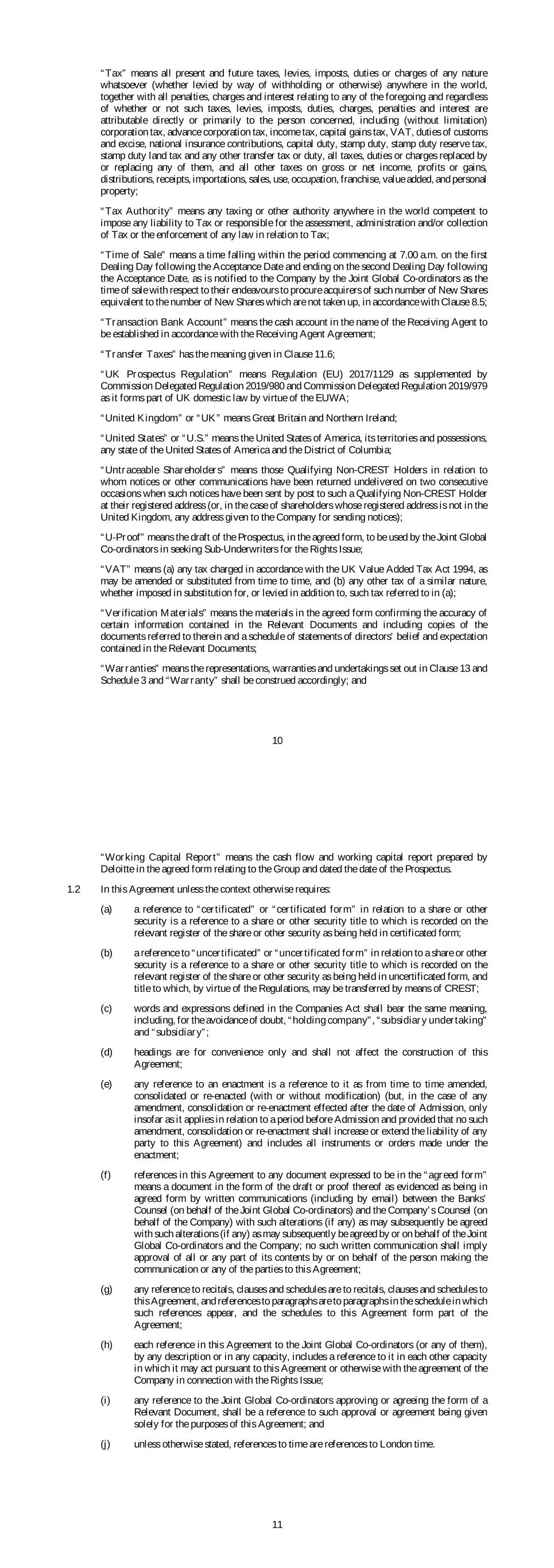 Final/Linklaters LLP/06/11/2023 A52293244 5 4.6 Recoupment of the Recoverable Amount under this Policy will be initiated by the Company as soon as practicable following the decision of the Remuneration Committee. 4.7 Where an affected Executive is required to make a payment in the form of Ordinary Shares or ADSs: 4.7.1 the Executive will cease to have any right in respect of the Ordinary Shares or ADSs, (as applicable); 4.7.2 the beneficial title to the Ordinary Shares or ADSs (as applicable) will immediately transfer to an employee benefit trust or such other person as the Remuneration Committee specifies; 4.7.3 the legal title to the Ordinary Shares or ADSs (as applicable) will be transferred to an employee benefit trust, or such other person as the Remuneration Committee specifies, as soon as possible, and the Executive will enter into such documents and take all actions that the Company requires to effect or facilitate the transfer; and 4.7.4 the Remuneration Committee may require the Executive to appoint a person to act as the Executive’s agent and/or attorney to effect any transfers or take any actions required in respect of the Ordinary Shares or ADSs (as applicable). 4.8 All amounts recoverable pursuant to this Policy shall be payable by the Executive to the Company (or as the Company directs) and shall be payable reasonably promptly upon demand. If not so paid, the sum shall be recoverable as a debt. 4.9 The details of any recovery of Recoverable Amounts will be communicated to an affected Executive in writing, except where the Remuneration Committee considers this would breach any laws or regulations that may apply or give rise to significant issues for any member of the Group, including but not limited to disclosure of commercially sensitive information. 4.10 For purposes of this Policy: 4.10.1 “Incentive-Based Compensation” means any remuneration that is granted, earned, or vested/released based wholly or in part upon the attainment of a Financial Reporting Measure. Incentive-Based Compensation is based in part upon the attainment of a Financial Reporting Measure if such compensation is subject to multiple conditions one or more, but not all, of which are Financial Reporting Measures. 4.10.2 “Financial Reporting Measure” means any measure that is determined and presented in accordance with IFRS (or any other accounting principles used to prepare the Group’s financial statements from time to time), and any measure derived wholly or in part from such measure, including non-IFRS financial measures (as well as other measures, metrics and ratios that are non-IFRS measures). The term Financial Reporting Measure includes stock price and total shareholder return. Financial Reporting Measures may be presented outside the Company’s financial statements. 4.10.3 “Received”: Incentive-Based Compensation is deemed Received in the Company’s financial period during which the Financial Reporting Measure specified in the Incentive-Based Compensation award is attained, even if the payment or grant occurs after the end of the financial period in which the Financial Reporting Measure is attained. For the avoidance of doubt, an Executive receives the Incentive-Based Final/Linklaters LLP/06/11/2023 A52293244 6 Compensation even when the Executive has established only a contingent right to payment at that time. Ministerial acts or other conditions necessary to effect issuance or payment, such as calculating the amount earned or obtaining Remuneration Committee approval of payment do not affect the determination of the date Received. In the case of awards subject to multiple conditions, not all conditions must be satisfied for the Incentive-Based Compensation to be deemed Received. The Remuneration Committee shall have the discretion to determine when the Incentive- Based Compensation was Received, and such determination need not be uniform across the type of Incentive-Based Compensation or for all Executives. 4.10.4 “Restatement Date” means the date on which the Company is required to prepare a Restatement, which is the earlier to occur of: (i) the date on which the Audit & Risk Committee concludes, or reasonably should have concluded, that the Company is required to prepare a Restatement; or (ii) the date a court, regulator or other legal authorised body directs the Company to prepare a Restatement. 5 IMPRACTICABILITY EXCEPTION TO RECOVERY OBLIGATION 5.1 The Company must recover the Recoverable Amount in compliance with this Policy except to the extent that the conditions set out in Sections 5.2.1, 5.2.2 or 5.2.3 of this Policy are met and the Remuneration Committee determines, in its sole discretion, that recovery would be impracticable. 5.2 The Remuneration Committee may determine that a recovery is impracticable only if: 5.2.1 following a reasonable attempt to recover the Recoverable Amount, the Remuneration Committee determines, in its sole discretion, that the direct expense that would need to be paid to a third party to assist in enforcing this Policy would exceed the Recoverable Amount. The Company must document such reasonable attempt(s) to recover and provide that documentation to the NYSE; 5.2.2 recovery would violate a law of England and Wales, where such law was adopted prior to November 28, 2022. Before concluding that it would be impracticable to recover any Recoverable Amount based on a violation of the law of England and Wales, the Company must obtain an opinion of English legal counsel, acceptable to the NYSE that recovery would result in such a violation and provide such opinion to the NYSE; or 5.2.3 if applicable, the Remuneration Committee determines that recovery would likely cause an otherwise tax-qualified retirement plan, under which benefits are broadly available to employees of the Company, to fail to meet the requirements of 26 U.S.C. 401(a)(13) or 26 U.S.C. 411(a) and regulations thereunder. 5.3 In determining whether a recovery would be impractic