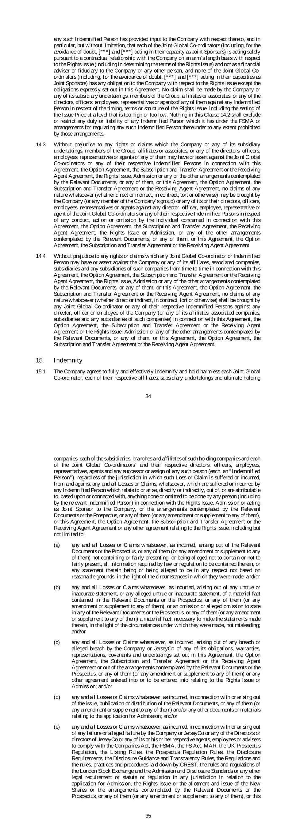 We, Luppiter Bidco Limited, refer to the Remaining Acquisition Agreement dated [●] July 2023 and made between yourselves and ourselves (the “Agreement”) and to the right granted to us pursuant to Clause 4.1 of the Agreement to require you to transfer to us some or all of the Remaining Shares and Remaining Debt. Defined terms in this notice shall have the meanings set out in the Agreement.