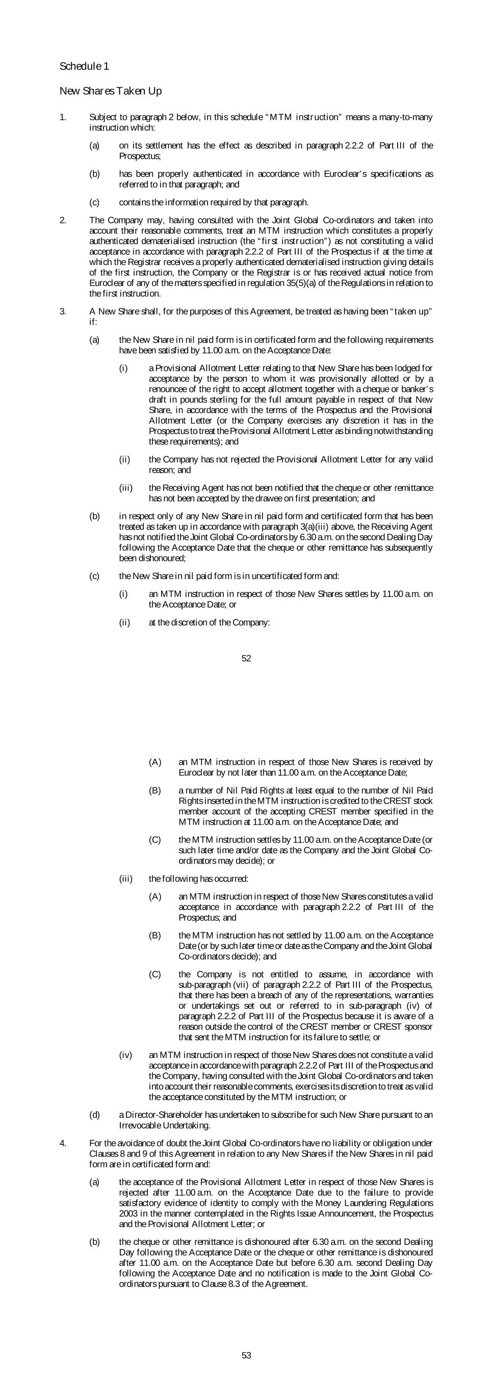 2.3No person has the right (whether exercisable now or in the future and whether contingent or not) to call for the allotment, conversion, issue, registration, sale or transfer or repayment of any share or loan capital or any other security giving rise to a right over the Remaining Shares under any option, agreement or other arrangement (including conversion rights and rights of pre-emption) other than pursuant to this Agreement or the Shareholders’ Agreement.
