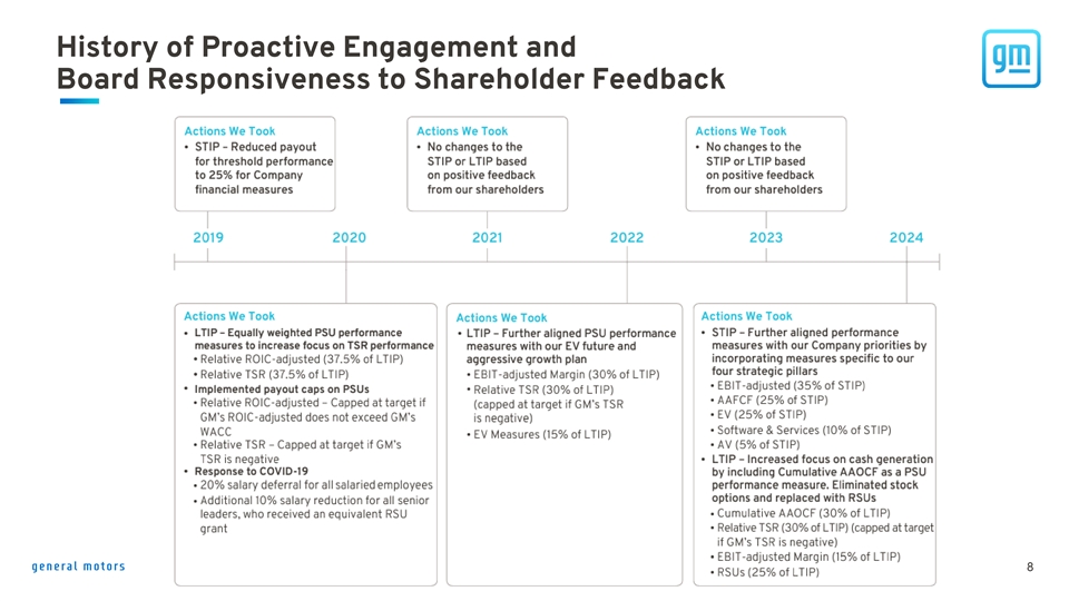 History of Proactive Engagement and Board Responsiveness to Shareholder Feedback 8