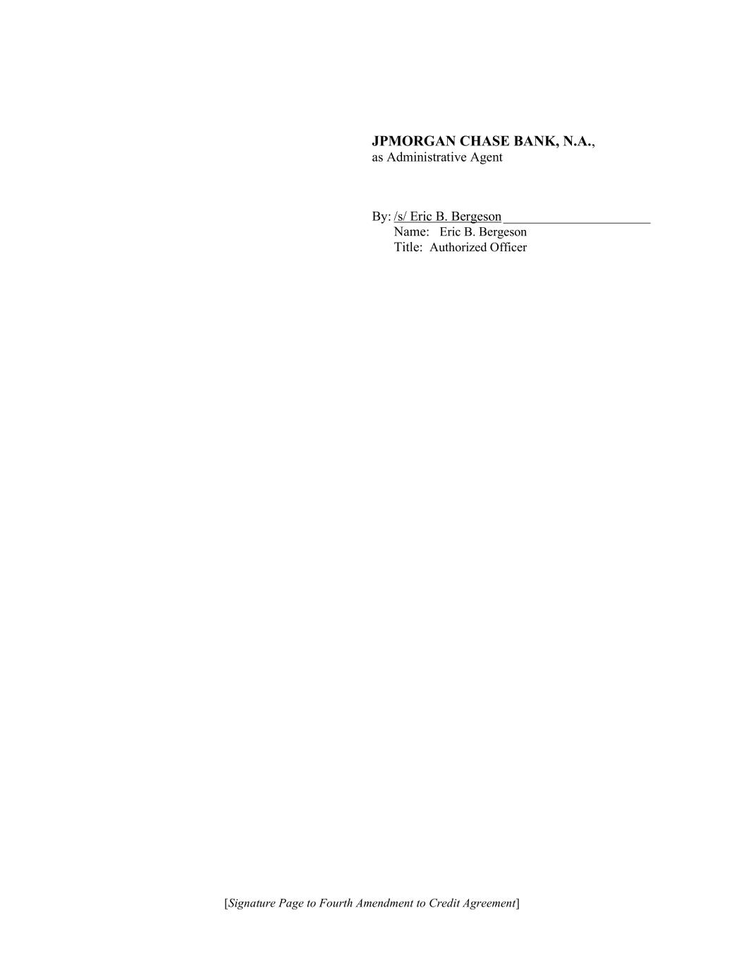 [Signature Page to Fourth Amendment to Credit Agreement] JPMORGAN CHASE BANK, N.A., as Administrative Agent By: /s/ Eric B. Bergeson ______________________ Name: Eric B. Bergeson Title: Authorized Officer