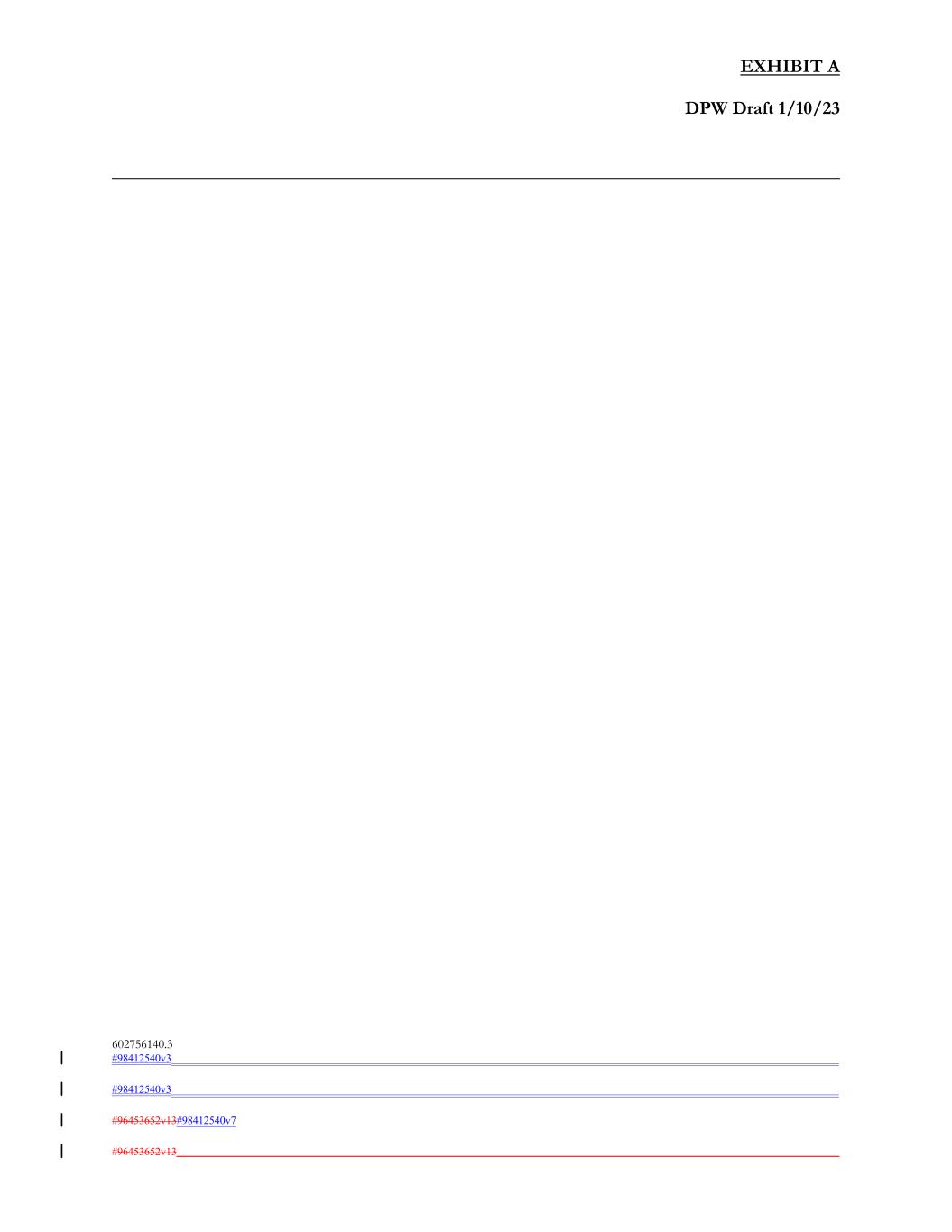 EXHIBIT A DPW Draft 1/10/23 ______________________________________________________________________________ 602756140.3 #98412540v3 #98412540v3 #96453652v13#98412540v7 #96453652v13
