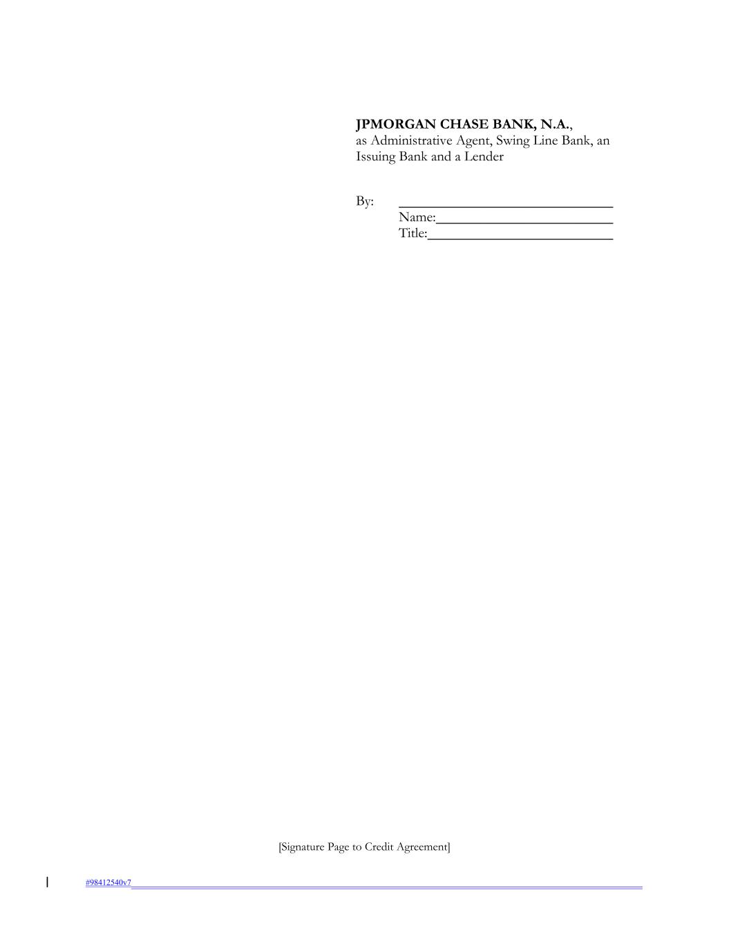 [Signature Page to Credit Agreement] #98412540v7 By: Name: Title: JPMORGAN CHASE BANK, N.A., as Administrative Agent, Swing Line Bank, an Issuing Bank and a Lender