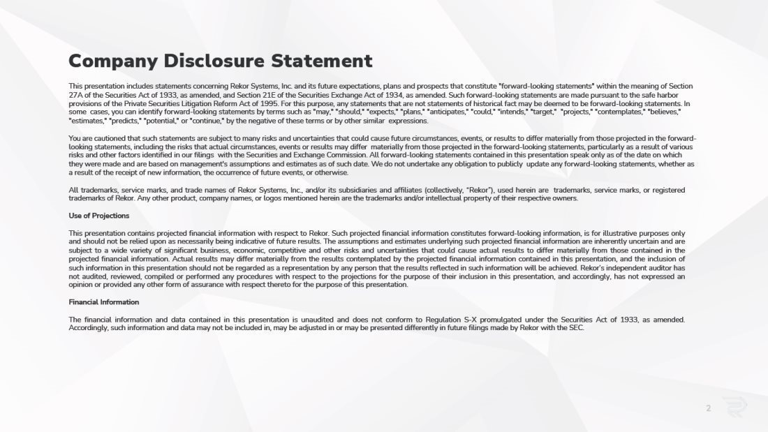 On May 29, 2024, Rekor Systems, Inc. (the “Company”) posted a corporate presentation to its website (the “Presentation”). The Presentation is intended to be used by the Company in future investor meetings. A copy of the Presentation is attached hereto as Exhibit 99.1 and is incorporated herein by reference.