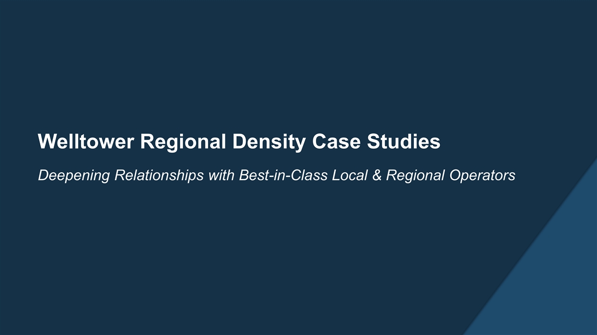 Welltower Regional Density Case Studies Deepening Relationships with Best-in-Class Local & Regional Operators