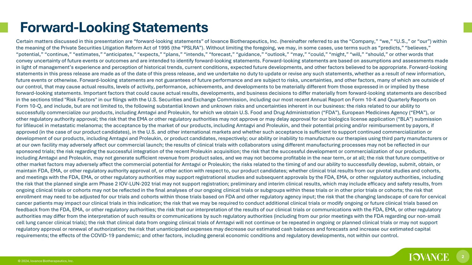 1 © 2024, Iovance Biotherapeutics, Inc. © 2024, Iovance Biotherapeutics, Inc. Corporate Overview May 31, 2024 1