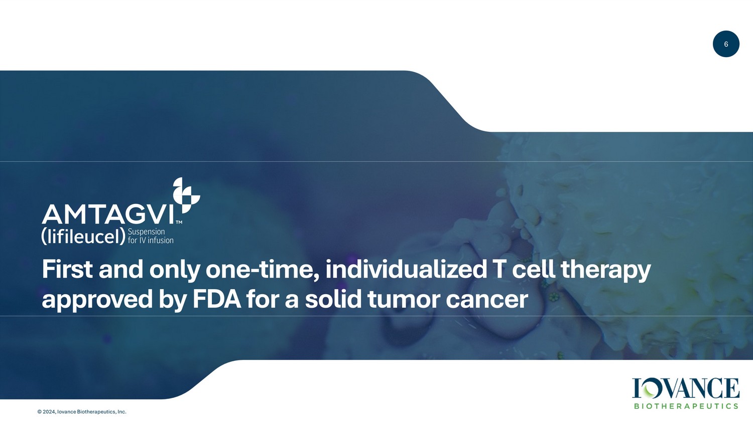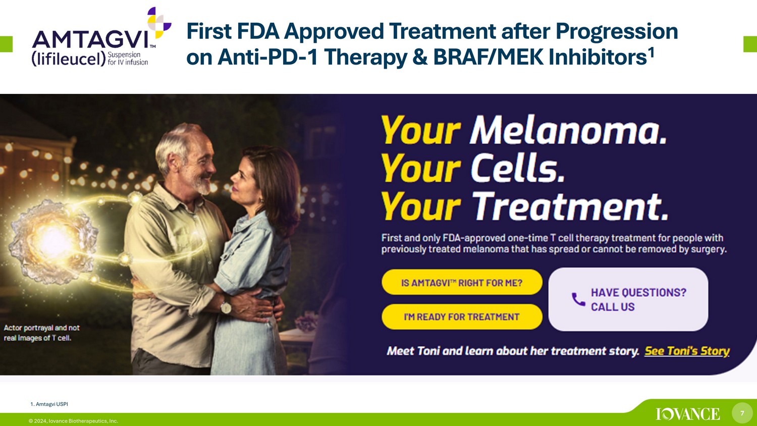 6 © 2024, Iovance Biotherapeutics, Inc. 6 First and only one - time, individualized T cell therapy approved by FDA for a solid tumor cancer