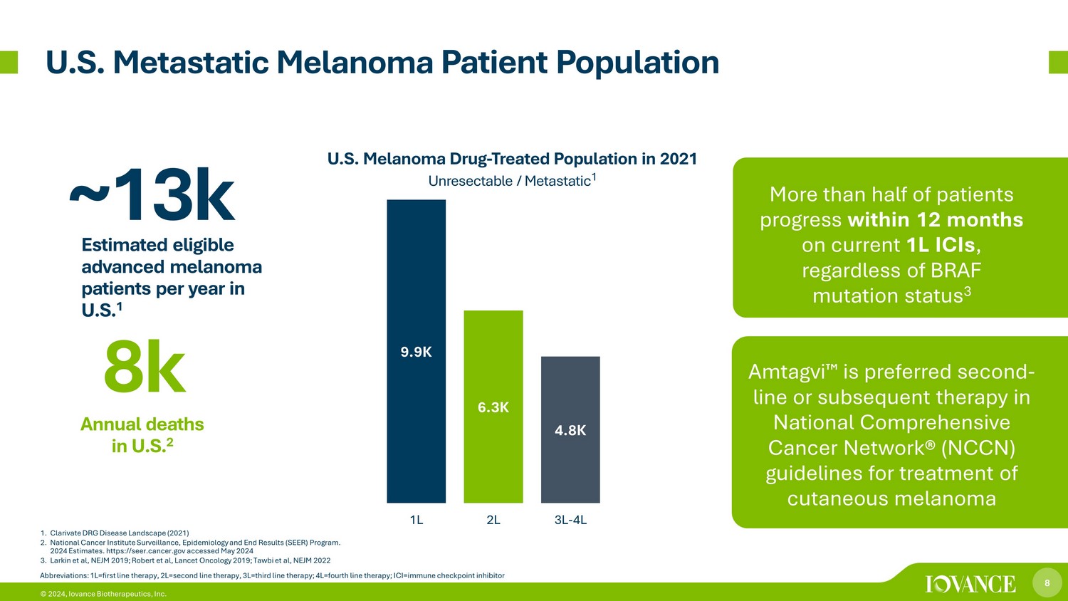 7 © 2024, Iovance Biotherapeutics, Inc. 1. Amtagvi USPI First FDA Approved Treatment after Progression on Anti - PD - 1 Therapy & BRAF/MEK Inhibitors 1