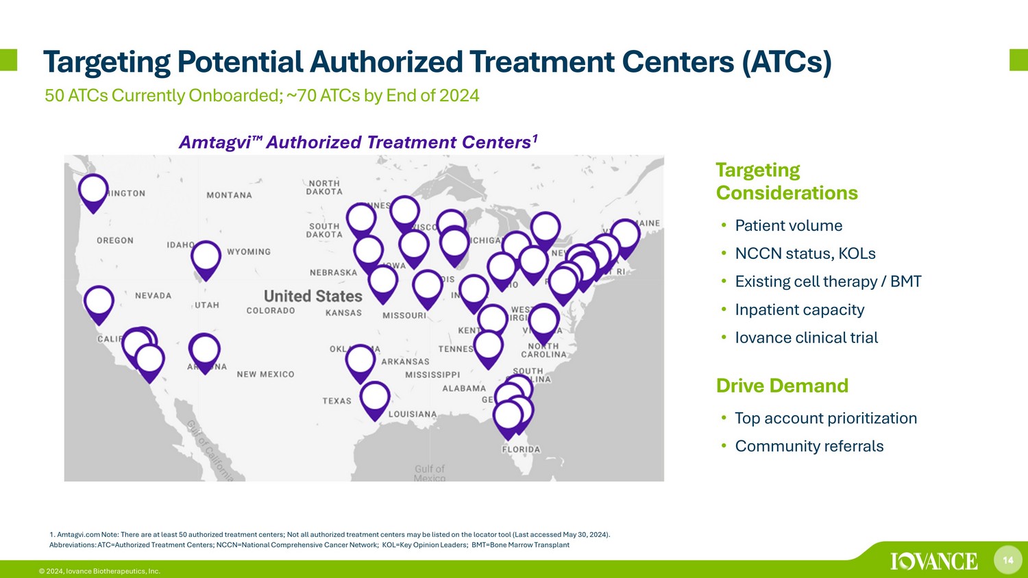 13 © 2024, Iovance Biotherapeutics, Inc. Iovance Cell Therapy Center ( i CTC): Capacity Expansion Plans i CTC Campus Expansion 10,000+ patients/year i CTC building expansion 3 Automation 13 © 2024, Iovance Biotherapeutics, Inc. Today (as built) up to 2,000 + patients/year 1 12 core suites for commercial 4 separate flex suites for clinical Site Expansion (in progress) 2 5,000+ patients/year 24 core suites for commercial 4 separate flex suites for clinical 1. Ongoing staffing, CDMO provides flexibility for incremental additional capacity 2. Expansion within existing shell 3. Option to build on adjacent parcel Pre - Approval (Complete) 100s of patients/year Launch Prep in core suites for commercial 4 separate flex suites for clinical