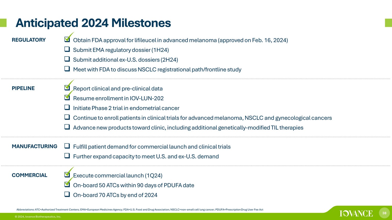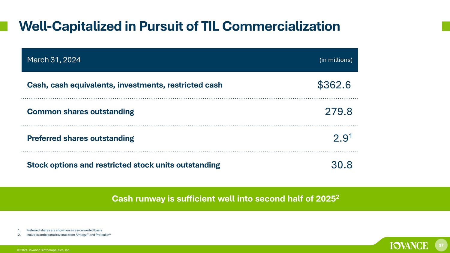 36 © 2024, Iovance Biotherapeutics, Inc. 36 Corporate Summary & Milestones