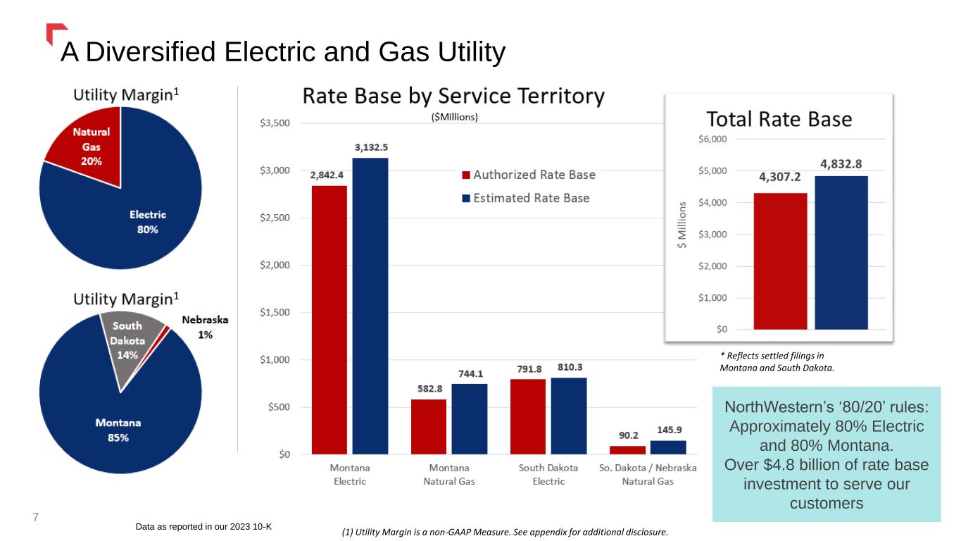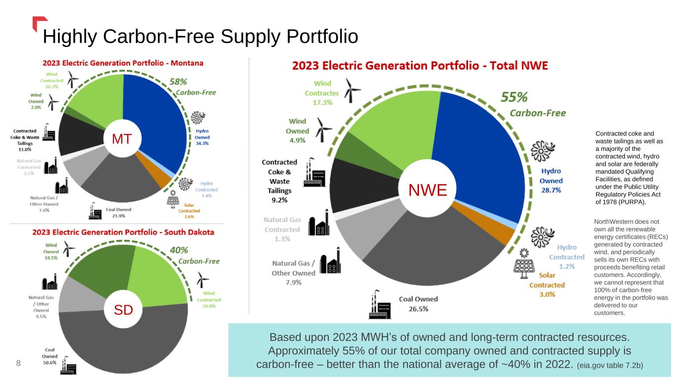 A Diversified Electric and Gas Utility 7 NorthWestern’s ‘80/20’ rules: Approximately 80% Electric and 80% Montana. Over $4.8 billion of rate base investment to serve our customers Data as reported in our 2023 10-K (1) Utility Margin is a non-GAAP Measure. See appendix for additional disclosure. * Reflects settled filings in Montana and South Dakota.