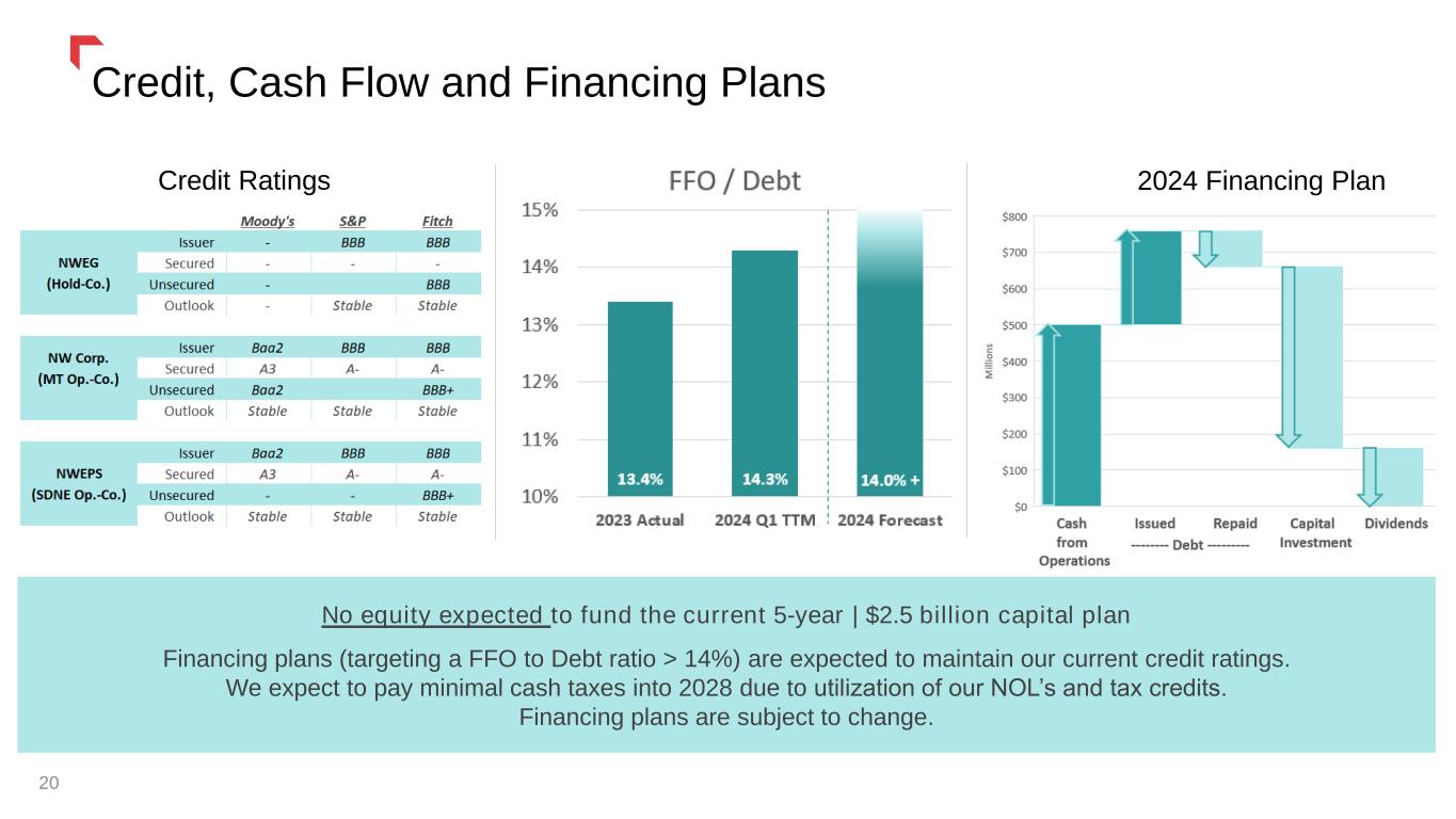 Track Record of Growing Capital Investment 19 2019-2023 Invested over the last 5 years* * Historical Capital Investment includes property, plant and equipment additions and AFUDC Credit, both from our cash flow statement, and change in capital expenditures included in accounts payable. ** See Regulated Utility Five-Year Capital Forecast slide in the appendix for additional detail. 2024-2028 Forecasted over the next 5 years** $2.3 Billion $2.5 Billion