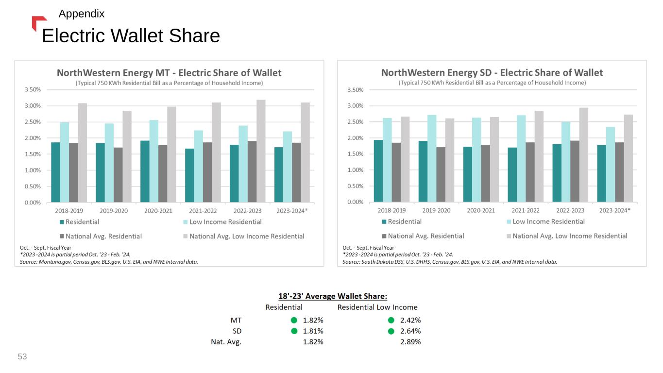 Natural Gas Wallet Share Appendix 54 Note: Montana typical bill is based on 65 therms which translates to ~0.32% lower wallet share than pictured. For consistency with South Dakota and Nebraska, 100 therms is used for Montana in this illustration. Oct. - Sept. Fiscal Year *2023 - 2024 is partial period Oct. '23 - Feb. '24