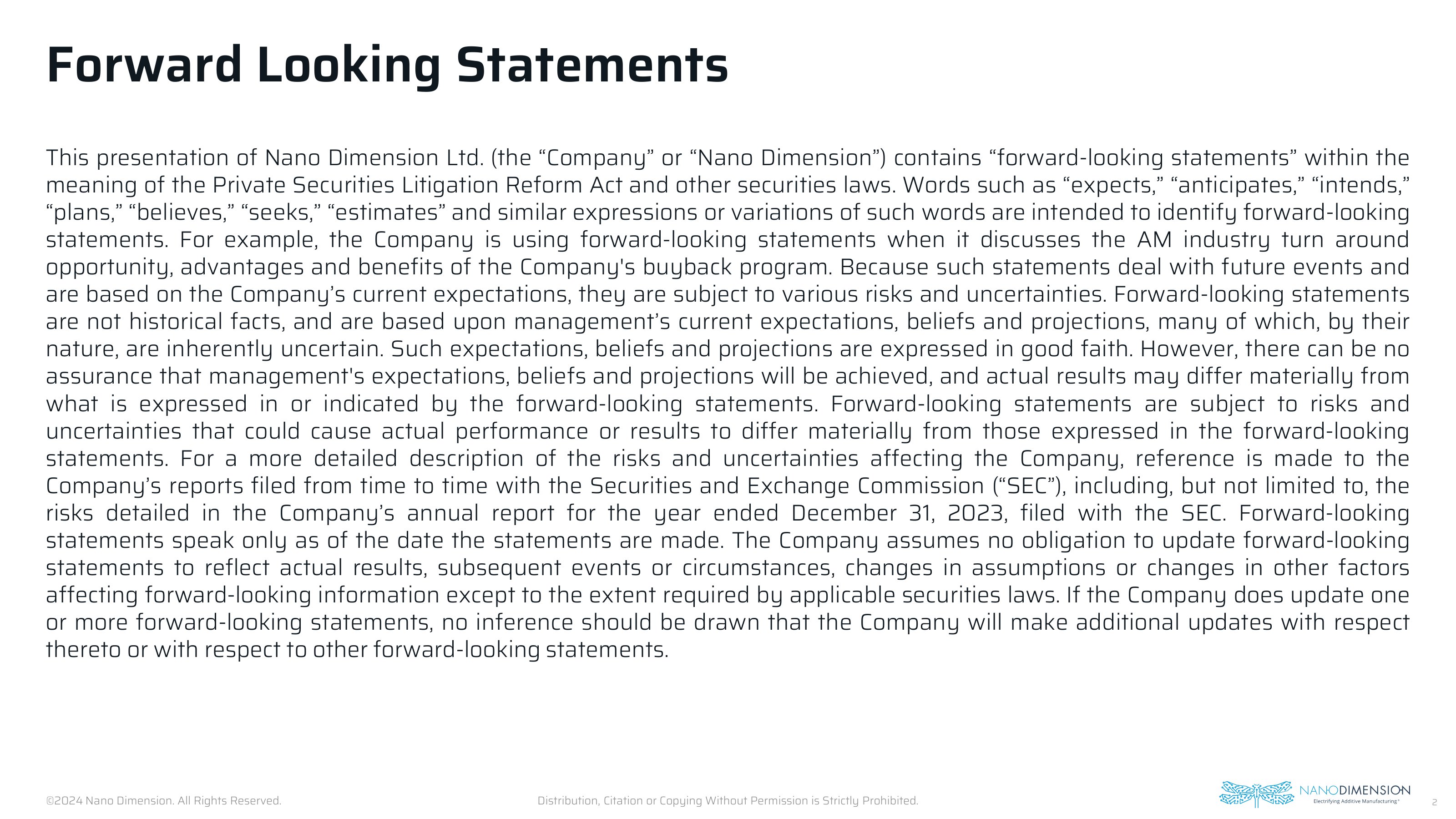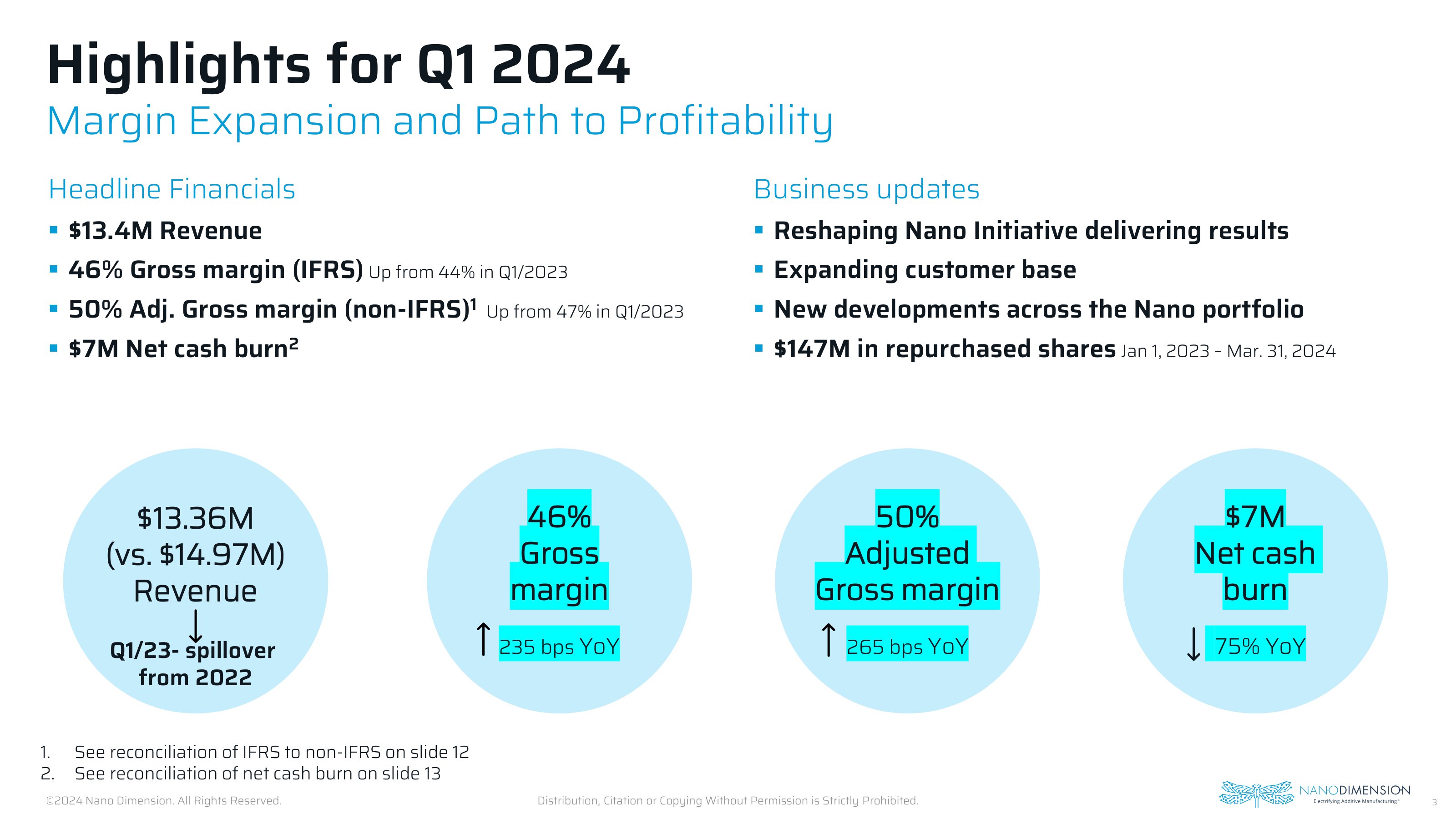 On June 3, 2024, Nano Dimension Ltd. (the “Registrant”) issued a press release titled “Nano Dimension Announces Q1/2024 Results Demonstrating Continued Gross Margin Expansion and Path to Profitability,” a copy of which is furnished herewith as Exhibit 99.1 and incorporated by reference herein.