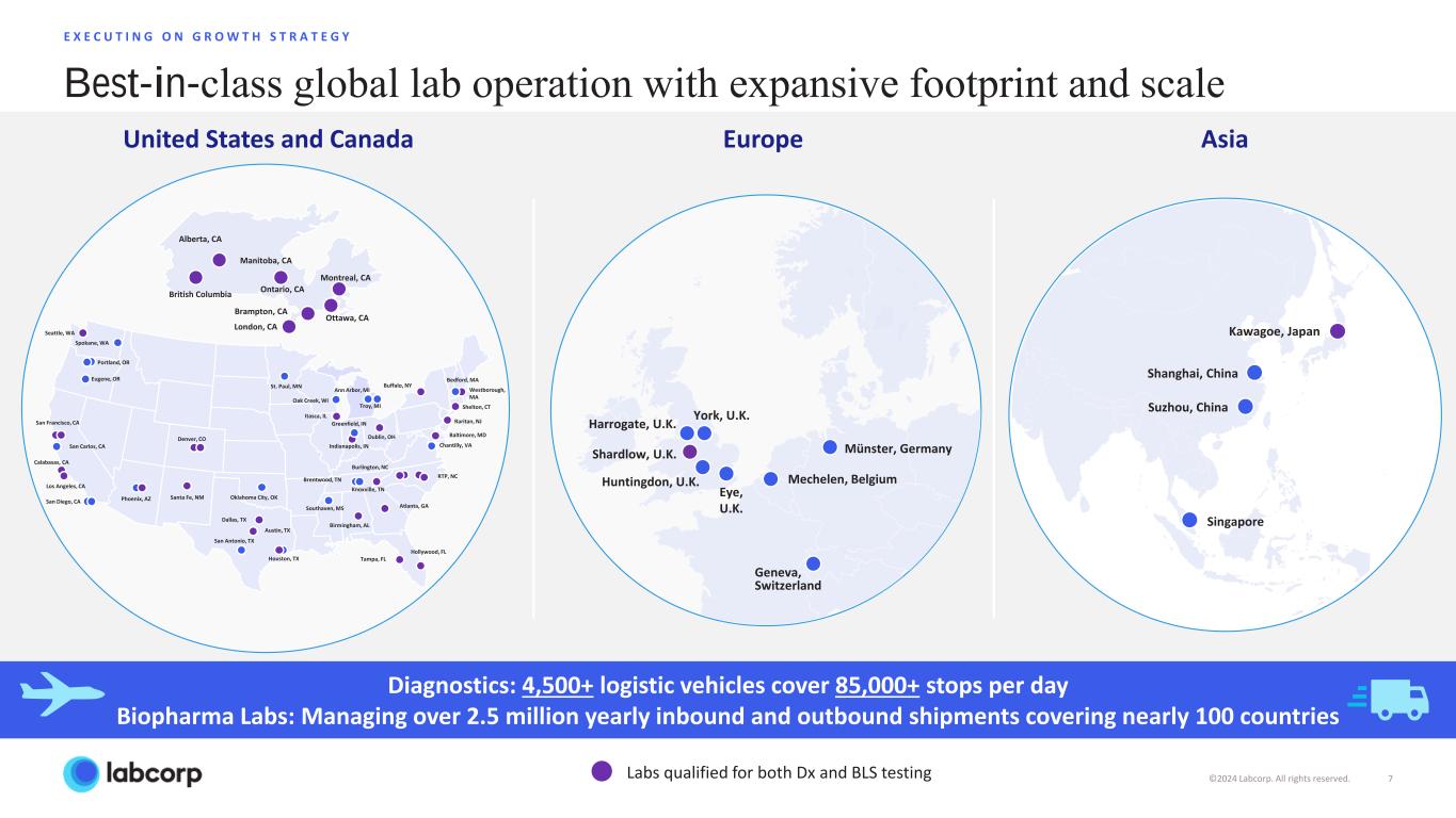 Strong overlap with >50 years of healthcare laboratory services and innovation Market leadership across core laboratory service businesses Biopharma Laboratory Services (“BLS”) Diagnostics Laboratories (“Dx”) 6 ©2024 Labcorp. All rights reserved. E X E C U T I N G O N G R O W T H S T R A T E G Y