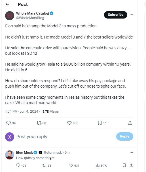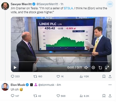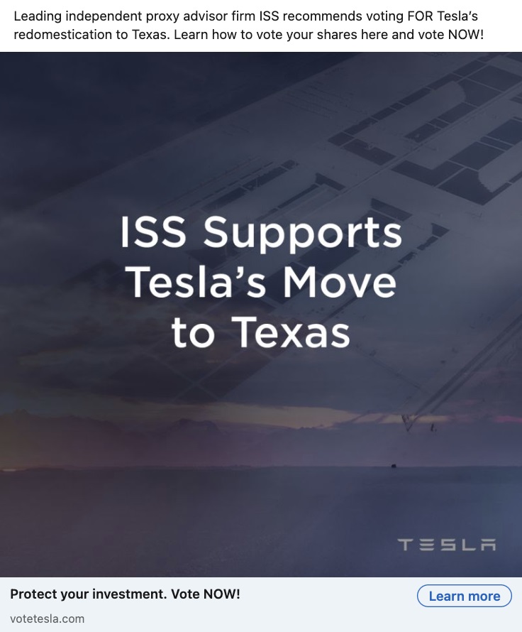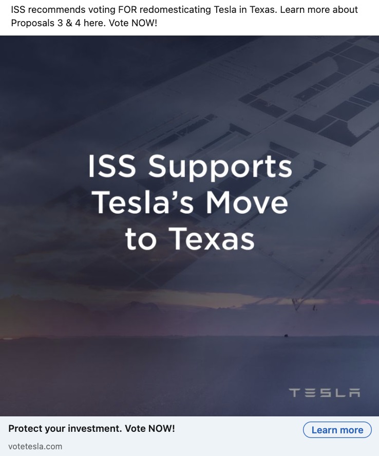 This communication contains forward-looking statements within the meaning of the Private Securities Litigation Reform Act of 1995 reflecting Tesla’s current expectations that involve risks and uncertainties. These forward-looking statements include, but are not limited to, statements concerning its goals, commitments, strategies and mission, its plans and expectations regarding the proposed redomestication of Tesla from Delaware to Texas (the “Texas Redomestication”) and the ratification of Tesla’s 2018 CEO pay package (the “Ratification”), expectations regarding the future of litigation in Texas, including the expectations and timing related to the Texas business court, expectations regarding the continued CEO innovation and incentivization under the Ratification, potential benefits, implications, risks or costs or tax effects, costs savings or other related implications associated with the Texas Redomestication or the Ratification, expectations about stockholder intentions, views and reactions, the avoidance of uncertainty regarding CEO compensation through the Ratification, the ability to avoid future judicial or other criticism through the Ratification, its future financial position, expected cost or charge reductions, its executive compensation program, expectations regarding demand and acceptance for its technologies, growth opportunities and trends in the markets in which we operate, prospects and plans and objectives of management. The words “anticipates,” “believes,” “continues,” “could,” “design,” “drive,” “estimates,” “expects,” “future,” “goals,” “intends,” “likely,” “may,” “plans,” “potential,” “seek,” “sets,” “shall,” “spearheads,” “spurring,” “should,” “will,” “would,” and similar expressions are intended to identify forward-looking statements, although not all forward-looking statements contain these identifying words. Tesla may not actually achieve the plans, intentions or expectations disclosed in its forward-looking statements and you should not place undue reliance on Tesla’s forward-looking statements. Actual results or events could differ materially from the plans, intentions and expectations disclosed in the forward-looking statements that we make. These forward-looking statements involve risks and uncertainties that could cause Tesla’s actual results to differ materially from those in the forward-looking statements, including, without limitation, risks related to the Texas Redomestication and the Ratification and the risks set forth in Part I, Item 1A, “Risk Factors” of the Annual Report on Form 10-K for the fiscal year ended December 31, 2023 and that are otherwise described or updated from time to time in Tesla’s other filings with the SEC. The discussion of such risks is not an indication that any such risks have occurred at the time of this filing. Tesla disclaims any obligation to update any forward-looking statement contained in this document.