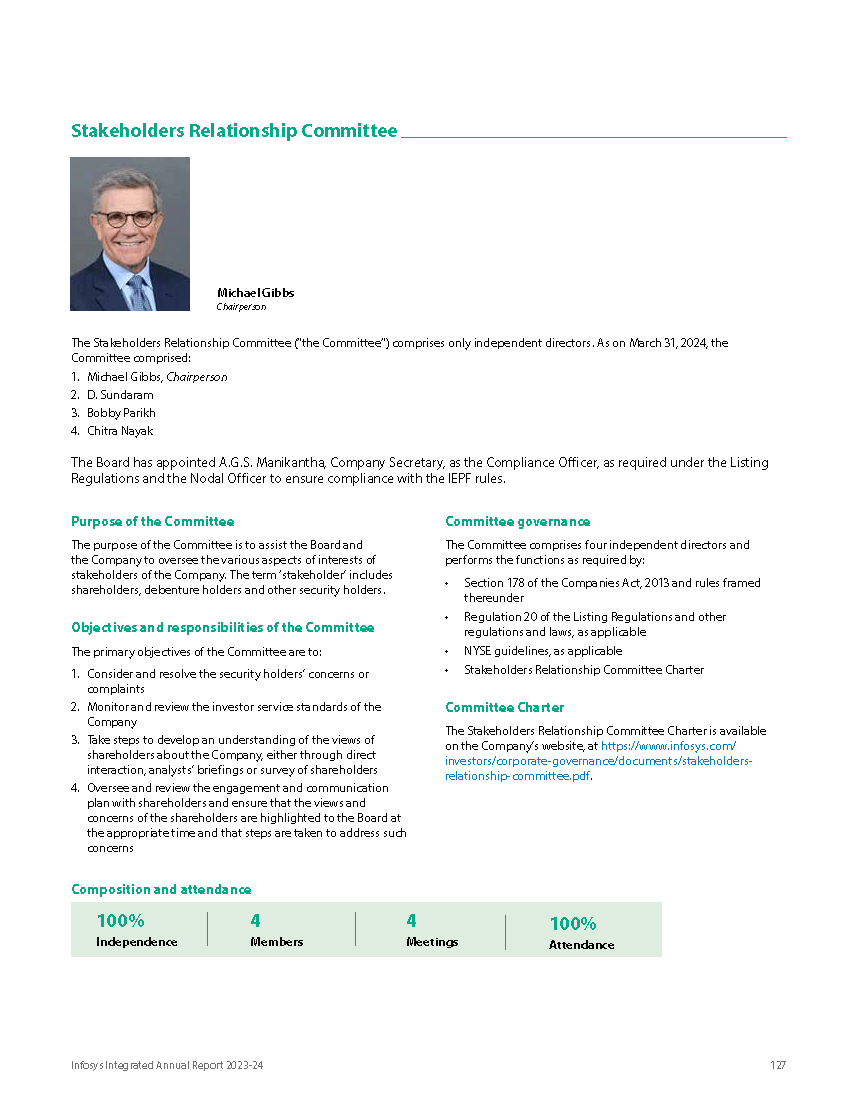 Infosys Limited, a company organized under the laws of the Republic of India ("Infosys", or the "Company"), hereby furnishes with the United States Securities and Exchange Commission this Report on Form 6-K regarding the stock exchange intimation dated June 3, 2024 regarding intimation of the Notice of the 43rd Annual General Meeting (AGM) and Integrated Annual Report 2023-24.